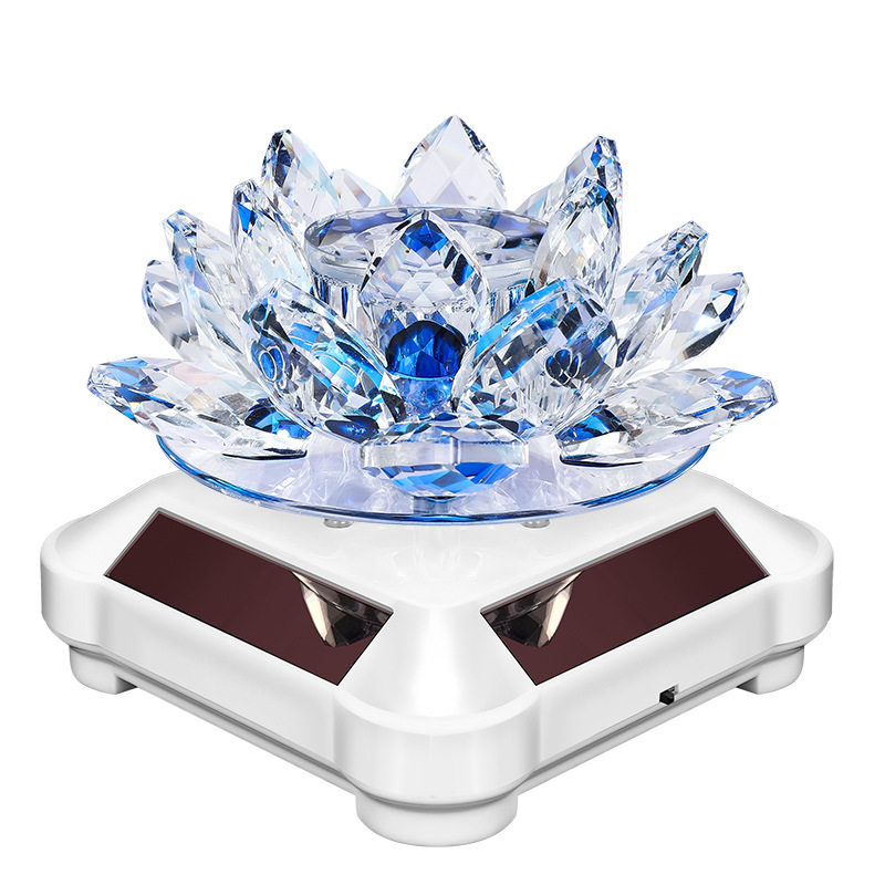 车载香水座太阳能自动旋转汽车摆件车内饰品旋转水晶莲花摆饰代发