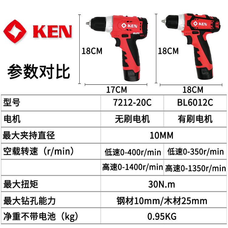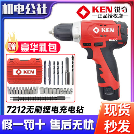 KEN锐奇无刷充电钻手电钻锂电钻多功能电动螺丝刀工具7212/6012C