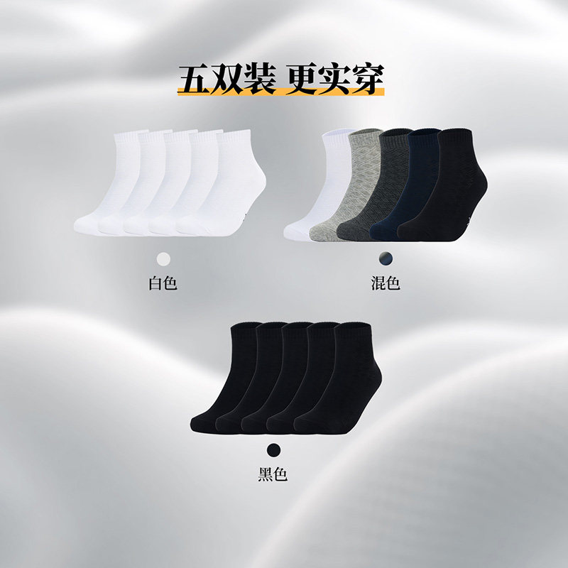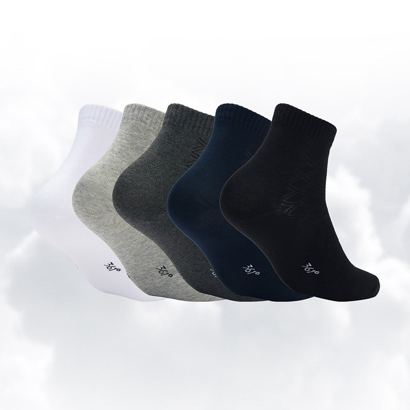 361运动袜2025年春季舒适透气吸汗平板中袜男五双装运动抗菌袜子