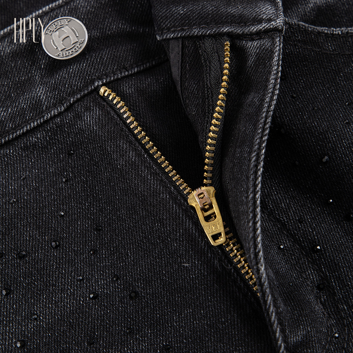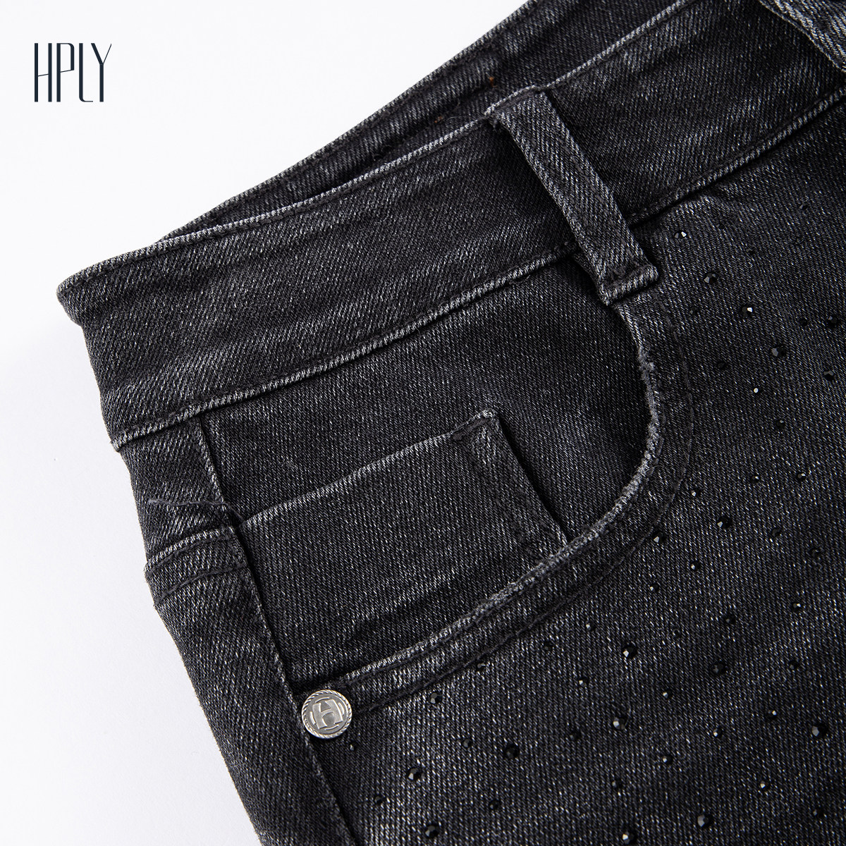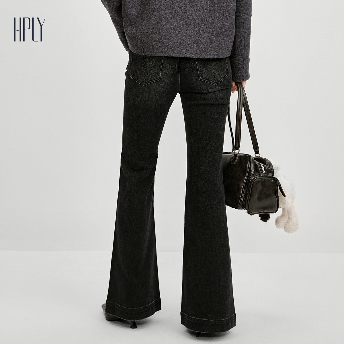 【商场同款】HPLY荷比俪2025冬新款女简约复古微喇烫钻牛仔裤