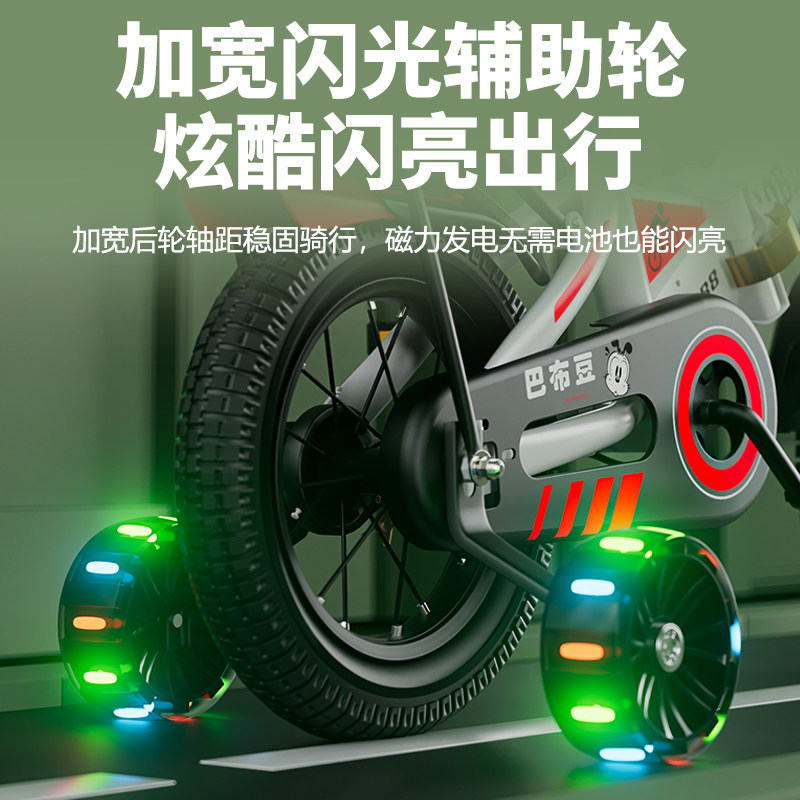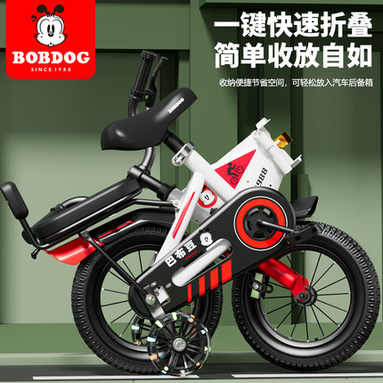 巴布豆儿童自行车可折叠减震2-5-6-8岁男女孩脚踏单车发光辅助轮