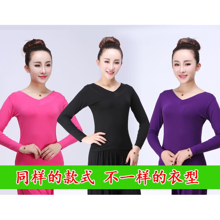 特价广场舞服装上衣长袖V领春秋季新款莫代尔拉丁舞蹈跳舞服成人