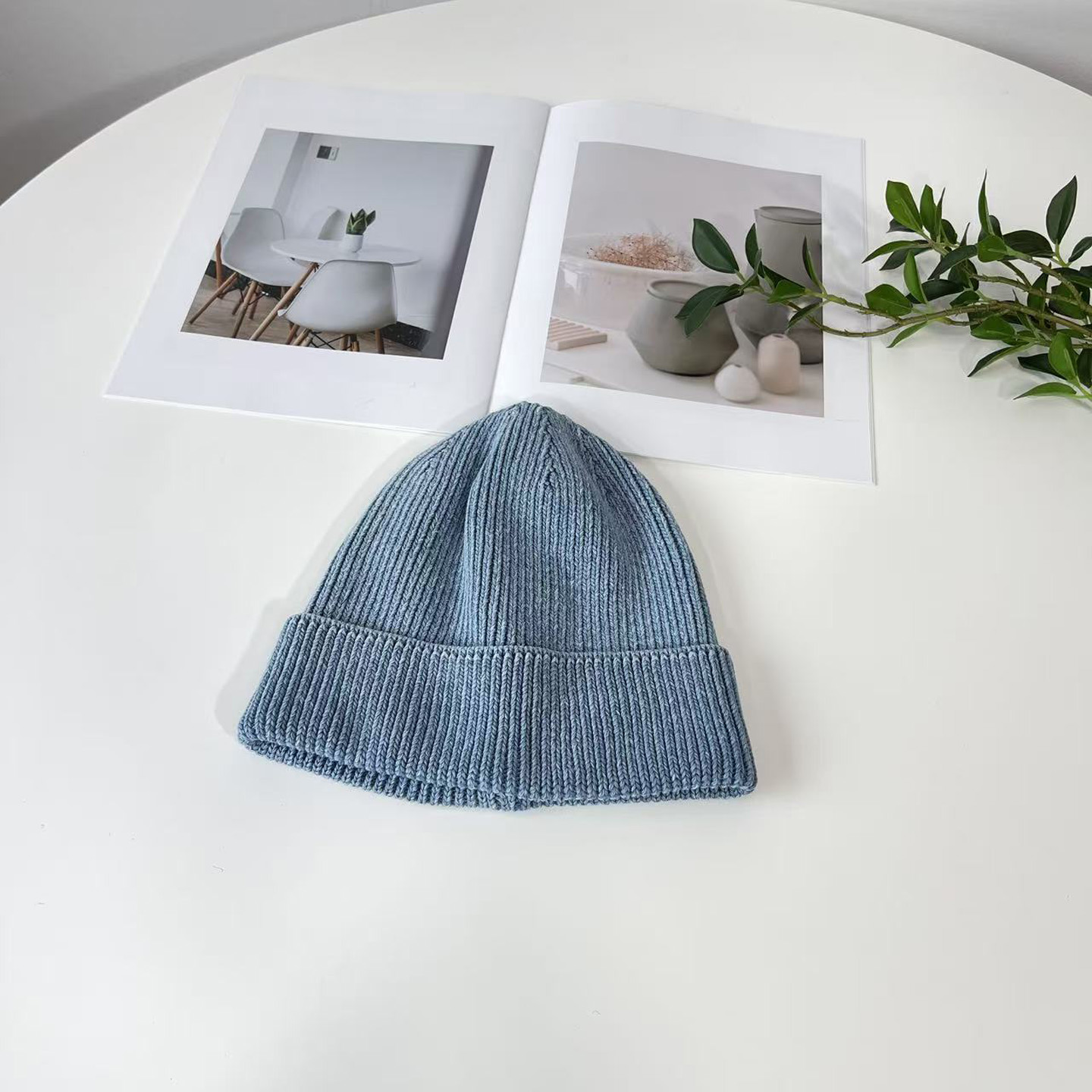 25年秋冬新款时尚休闲针织帽女韩国东大门代购简约百搭蓝色毛线帽
