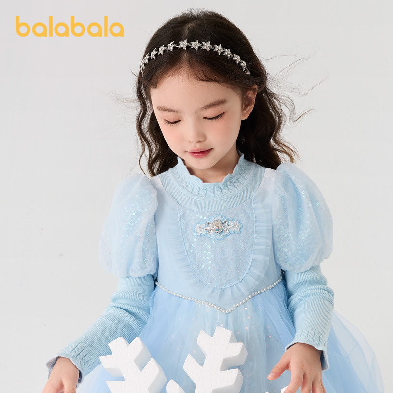 【艾莎IP商场同款】巴拉巴拉女童连衣裙网纱公主裙子保暖秋冬新款