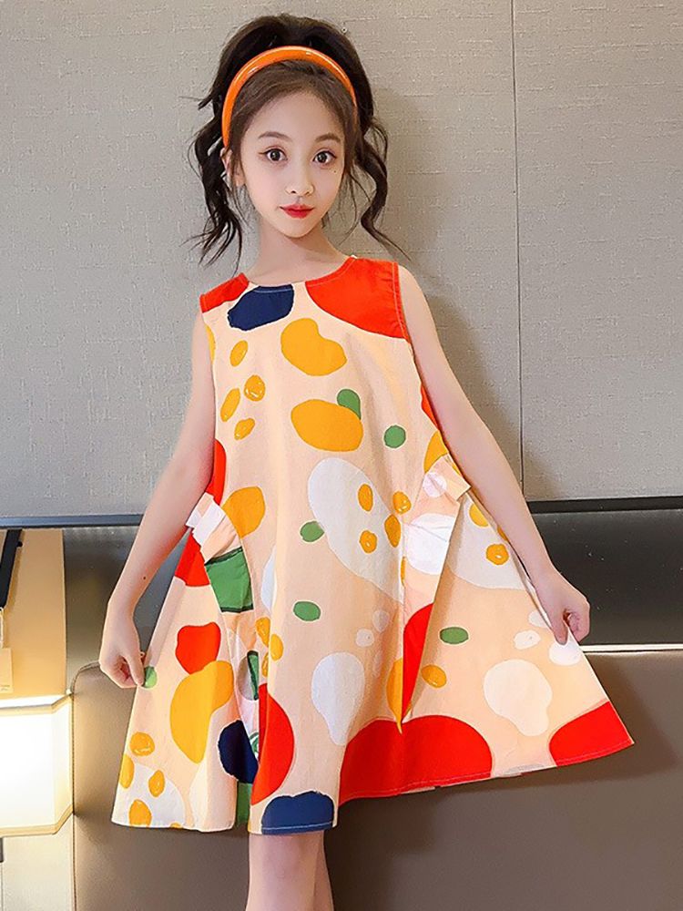 多巴胺穿搭女童夏装连衣裙新款中大儿童涂鸦无袖背心时尚公主裙子