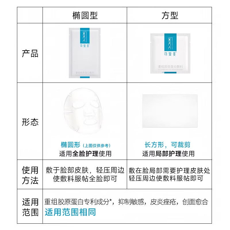 可复美重组胶原蛋白敷料敏感性肌肤医用敷料贴方型非面膜