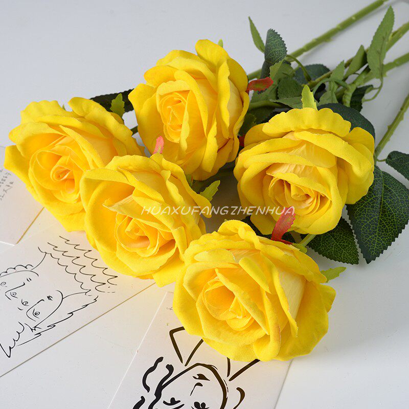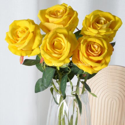 黄玫瑰仿真花假花情人节装饰摆件