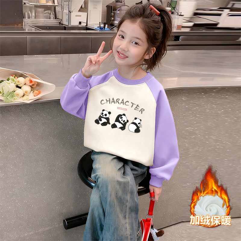 100%纯棉女童装加绒圆领卫衣秋冬季新款中小儿童宝宝卡通动漫上衣