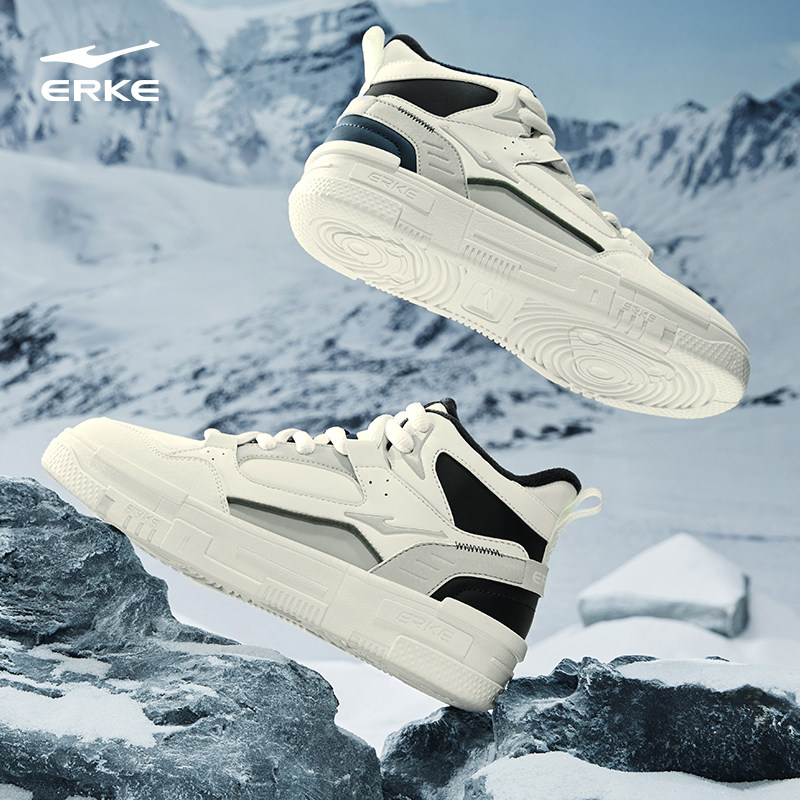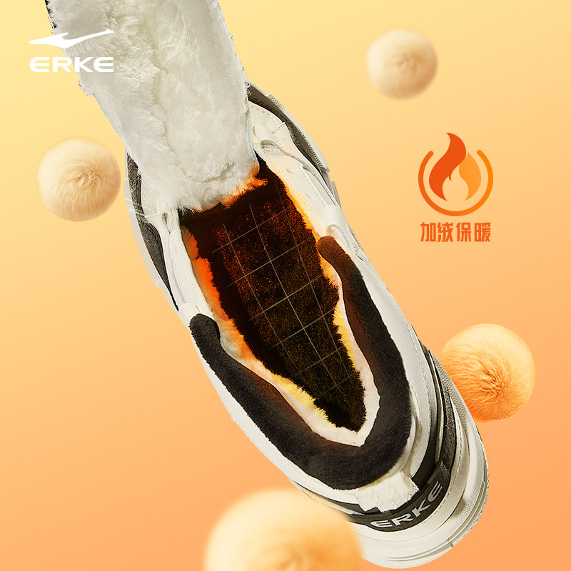契约2鸿星尔克男鞋高帮板鞋棉鞋冬季新款加绒鞋子休闲运动鞋男士