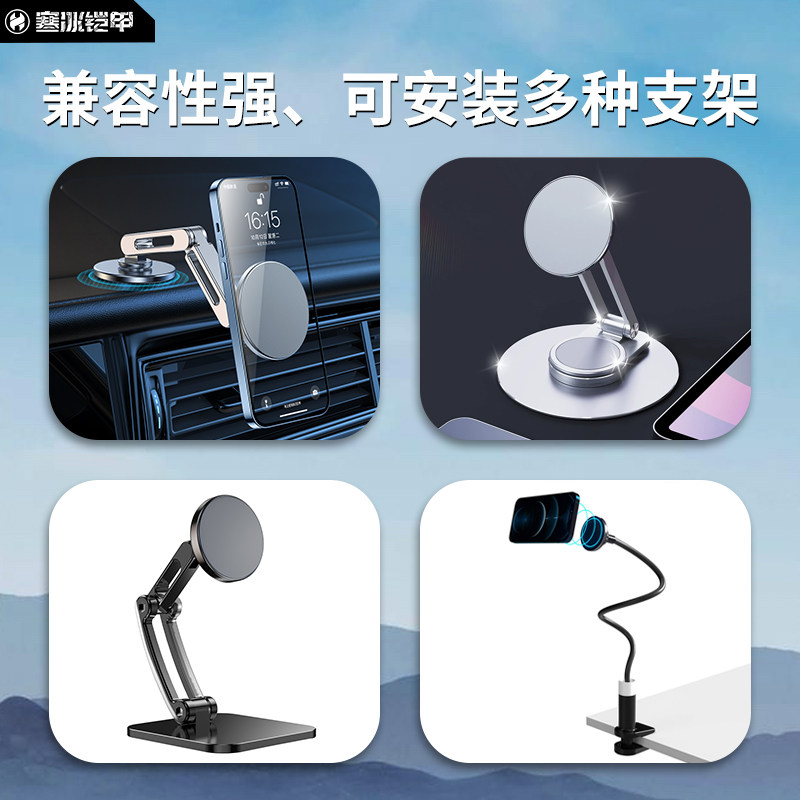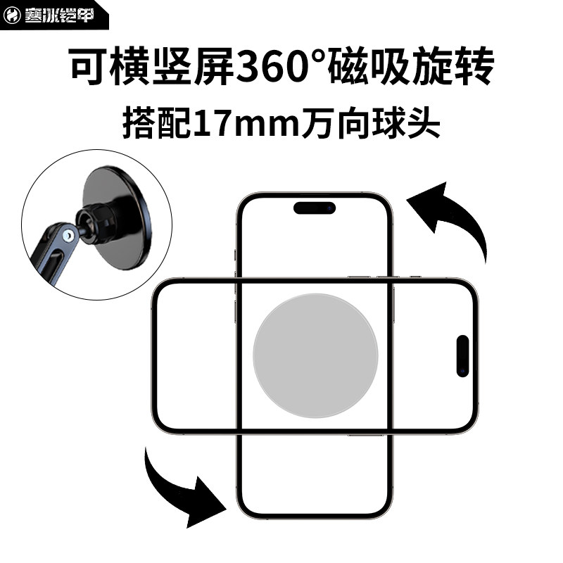 寒冰铠甲magsafe磁吸头车载17mm万向头球头通用强磁磁铁吸盘铝合金金属手机配件中控仪表台出风口桌面架子