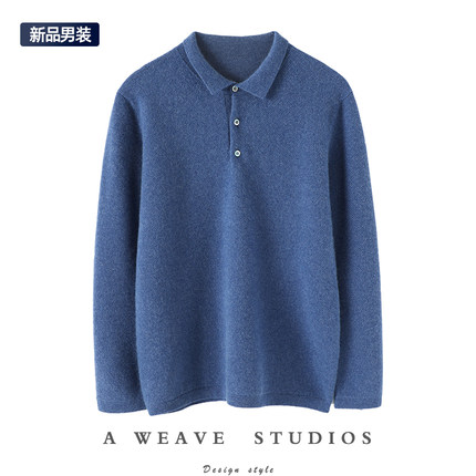 意大利桂花针!加厚衬衫领男士山羊绒衫纯羊绒毛衣休闲针织衫男冬