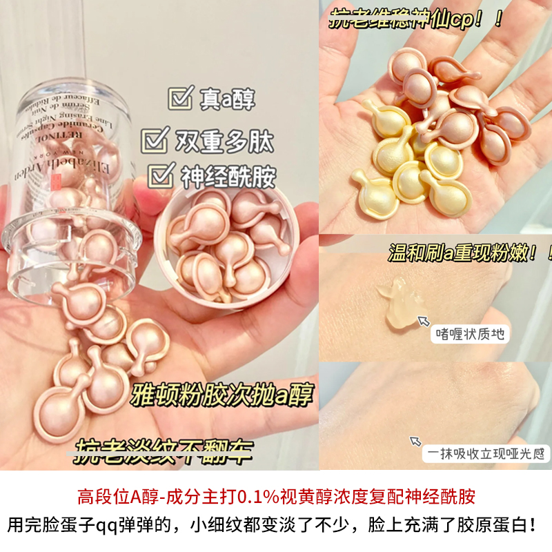 A醇天花板!伊丽莎白雅顿粉胶金胶精华油滋润保湿维稳7粒
