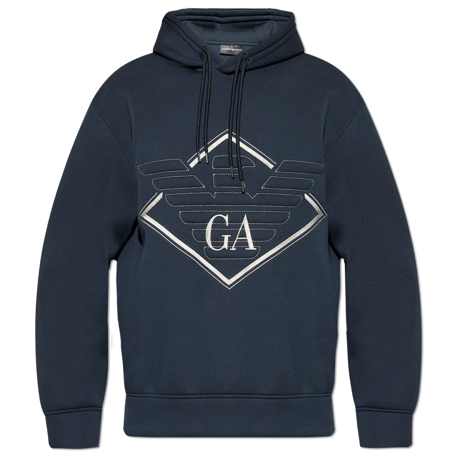 Armani/阿玛尼EA 男士鹰标潮太空棉连帽套头卫衣EM002882 AF18339