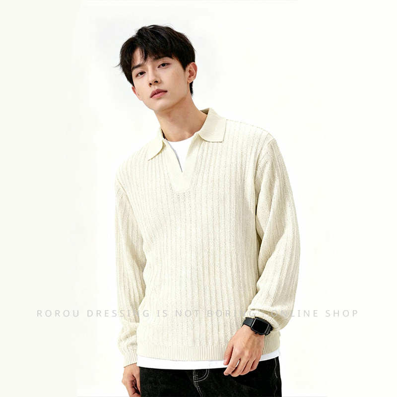 韩版长袖男士t恤基础纯色V领长袖宽松百搭重磅透气针织衫短袖上衣