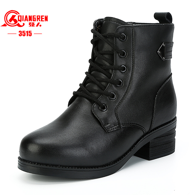 3515强人女鞋冬季羊毛保暖真皮中筒马丁靴加厚加绒棉鞋英伦风短靴