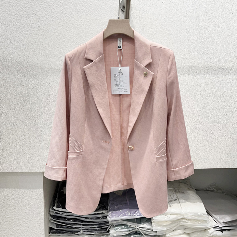 亮丝七分袖西装外套女2025夏季新款显瘦修身潮流小西服上衣