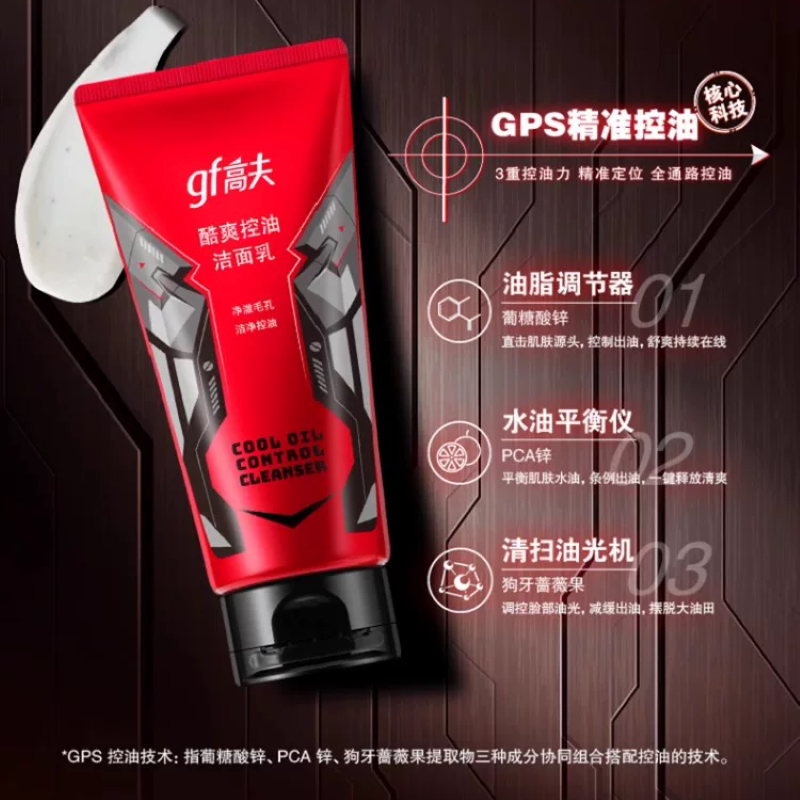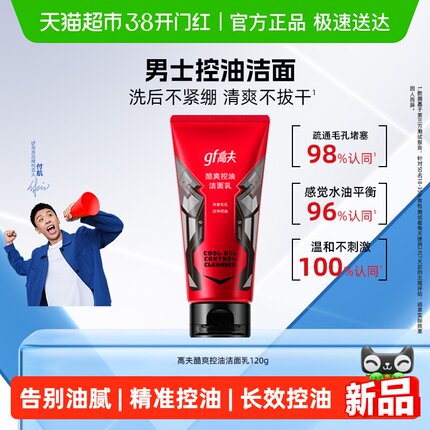 高夫酷爽控油洁面乳120g男士保湿补水毛孔清洁清爽泡沫洗面奶正品