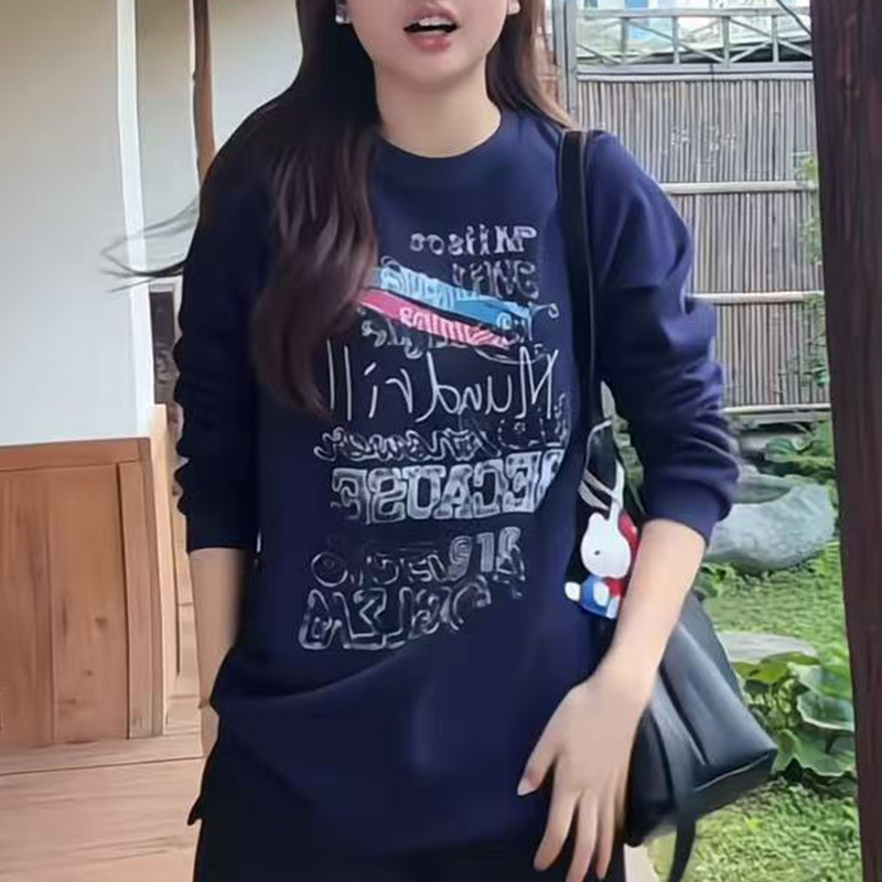 美式复古字母印花卫衣女设计感休闲显瘦长袖上衣小个子套头秋冬潮