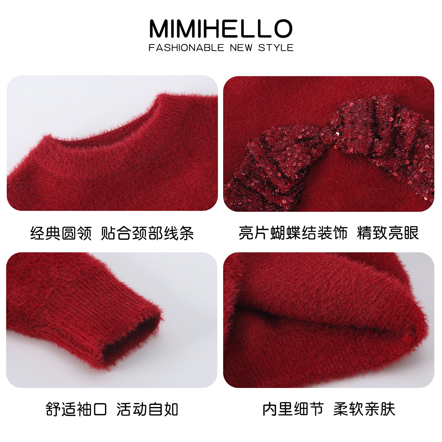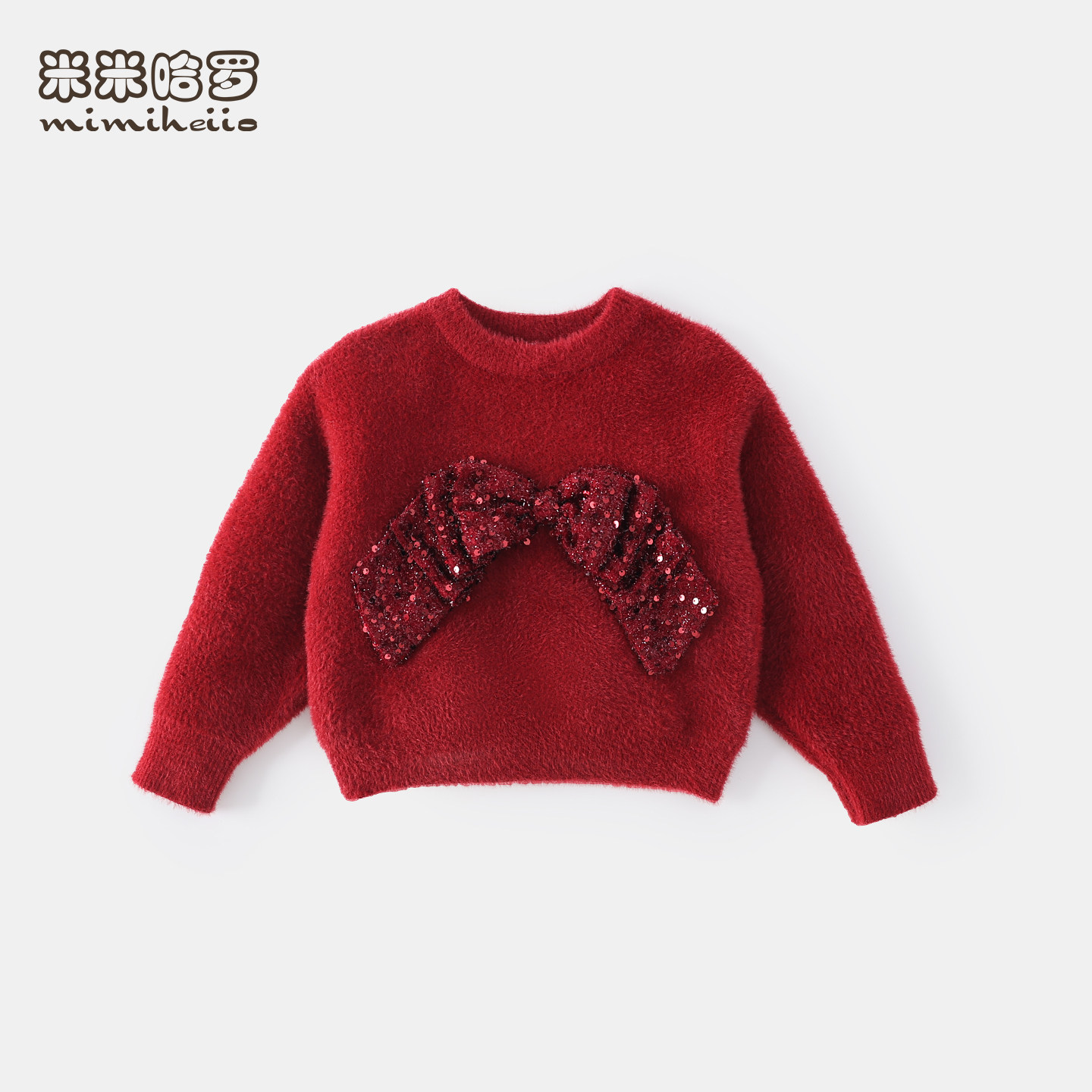 女童亮片蝴蝶结仿水貂绒毛衣