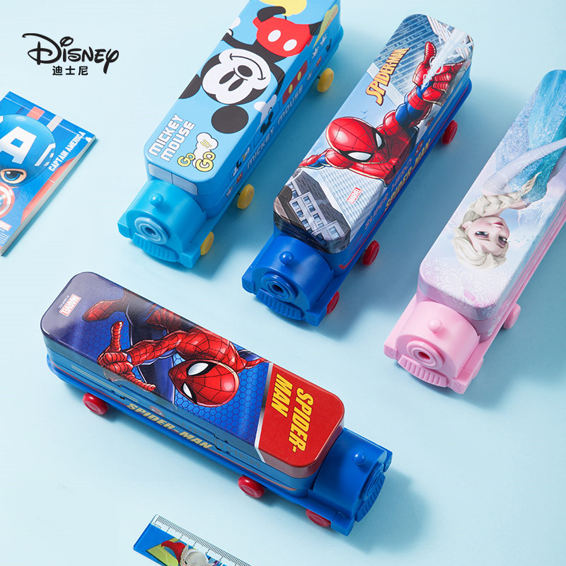 Disney迪士尼火车文具盒蜘蛛侠多功能铅笔盒男童笔袋幼儿园女孩子款儿童小学生用一年级黑科技小汽车多层笔盒