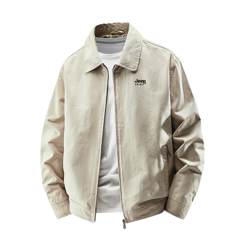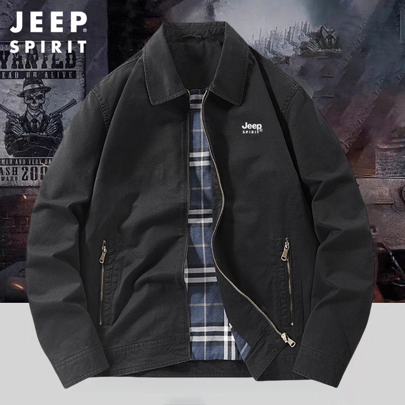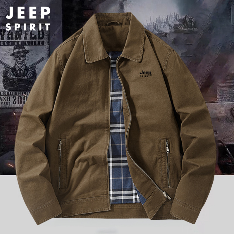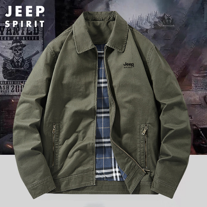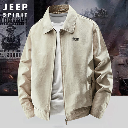 JEEP吉普纯棉夹克男春季新款宽松中老年爸爸水洗翻领休闲运动外套