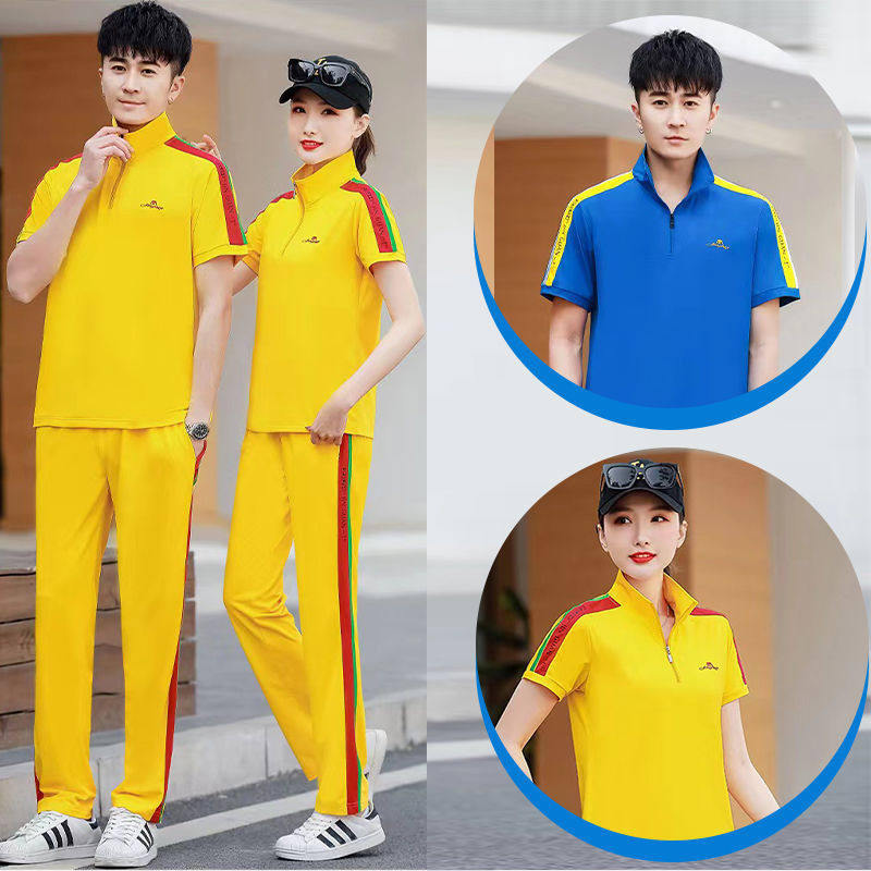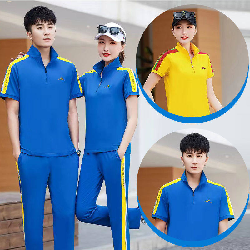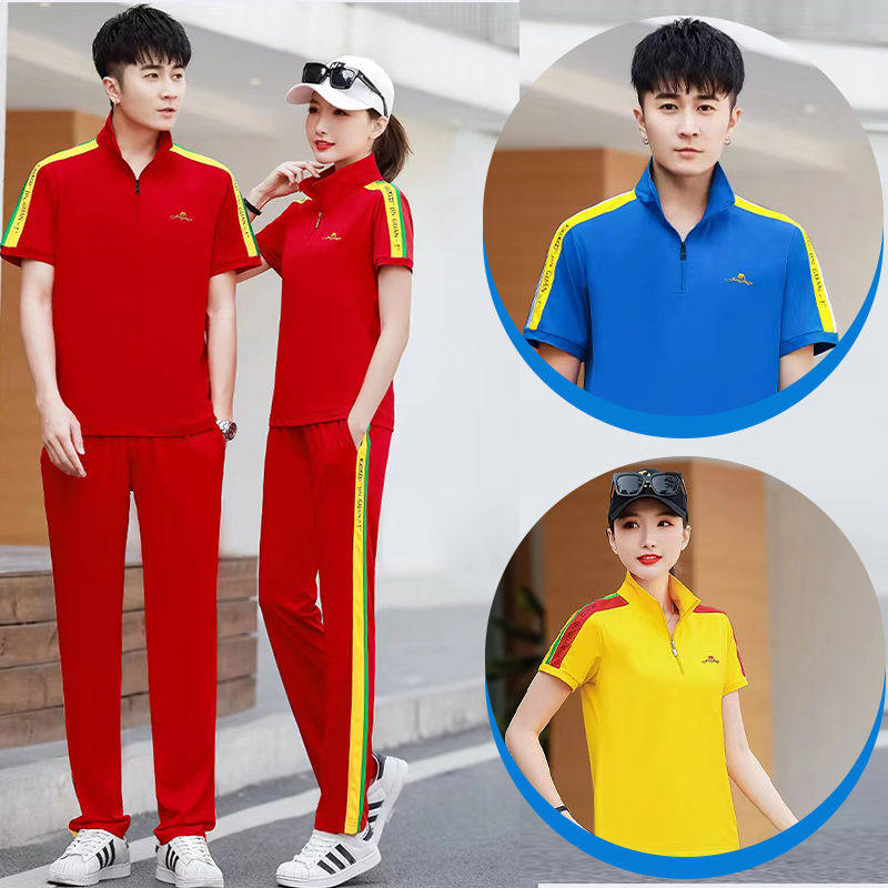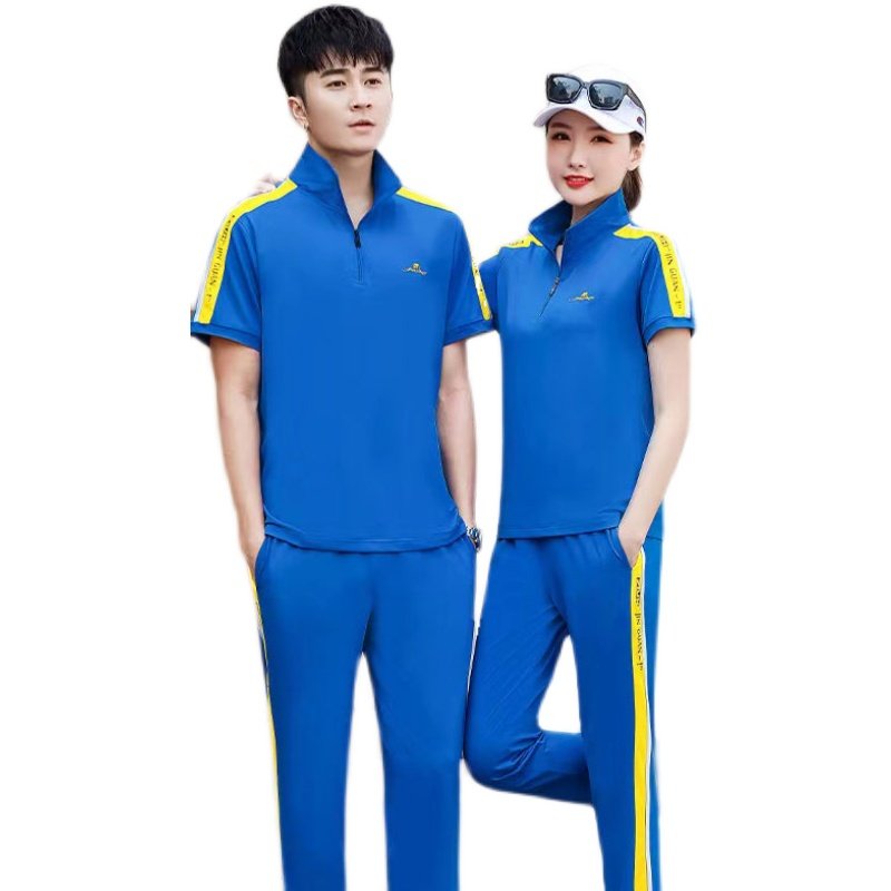 晋冠佳木斯运动套装短袖长裤大码T恤男女中老年广场舞团体服夏季