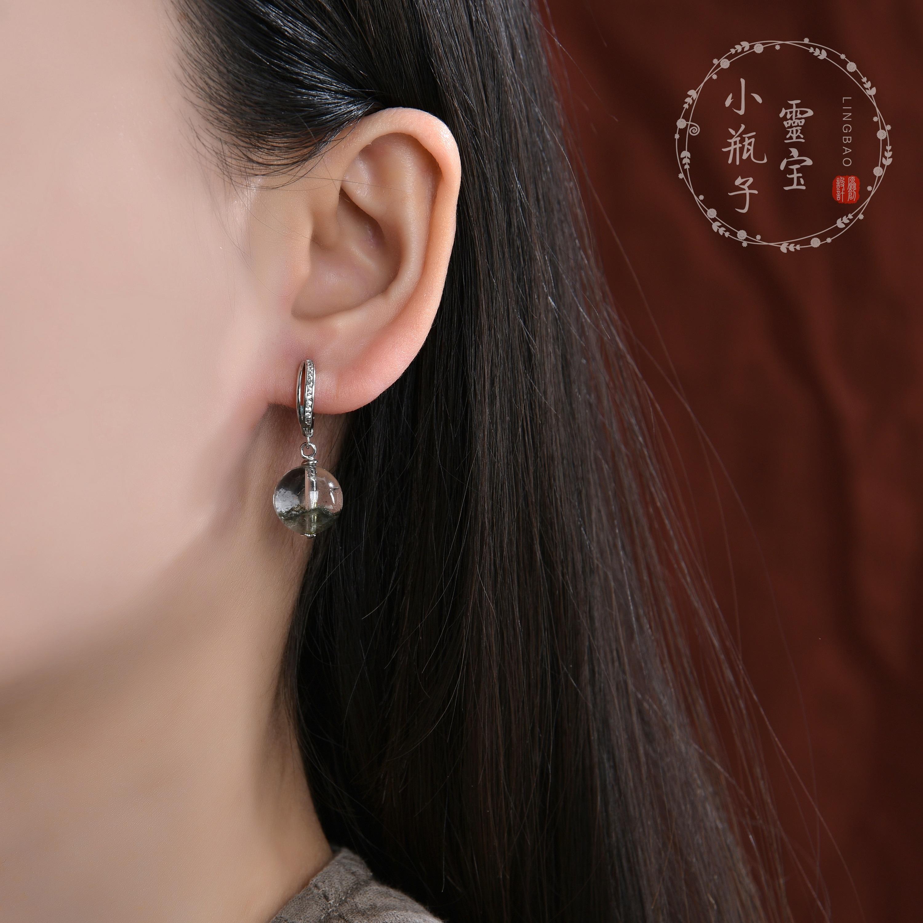 【鬼佬财神】天然绿幽灵聚宝盆耳环女925纯银招财防过敏耳坠耳环