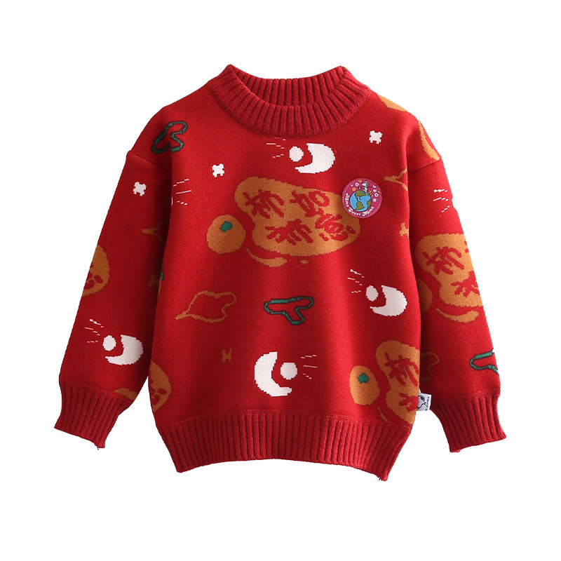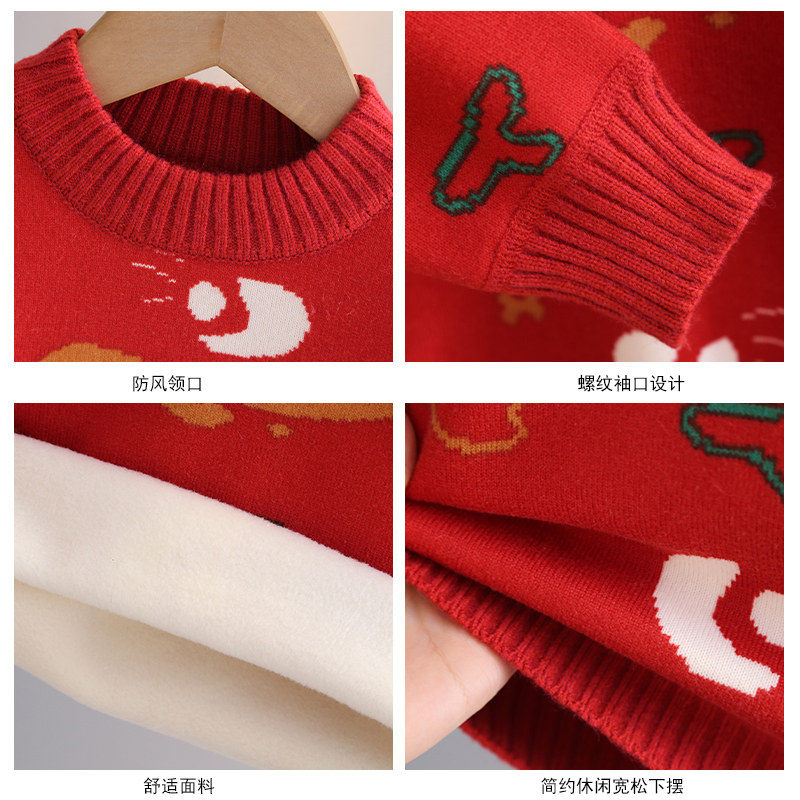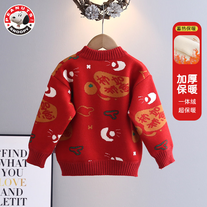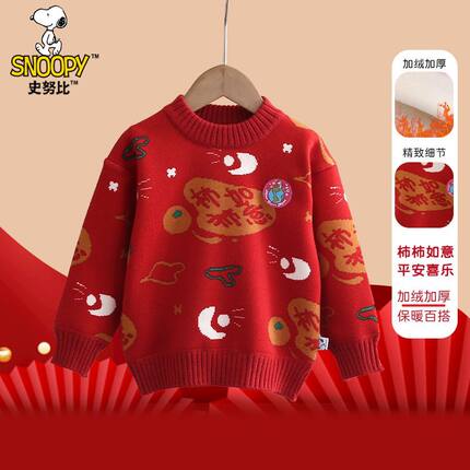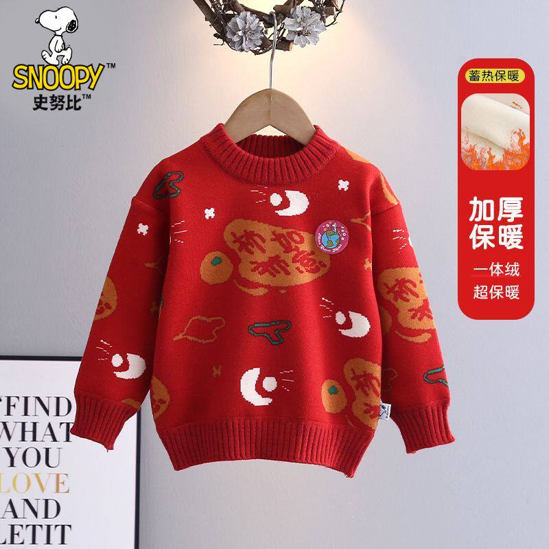 史努比女童秋冬毛衣新款喜庆新春红色上衣小男孩百搭时尚套头衫