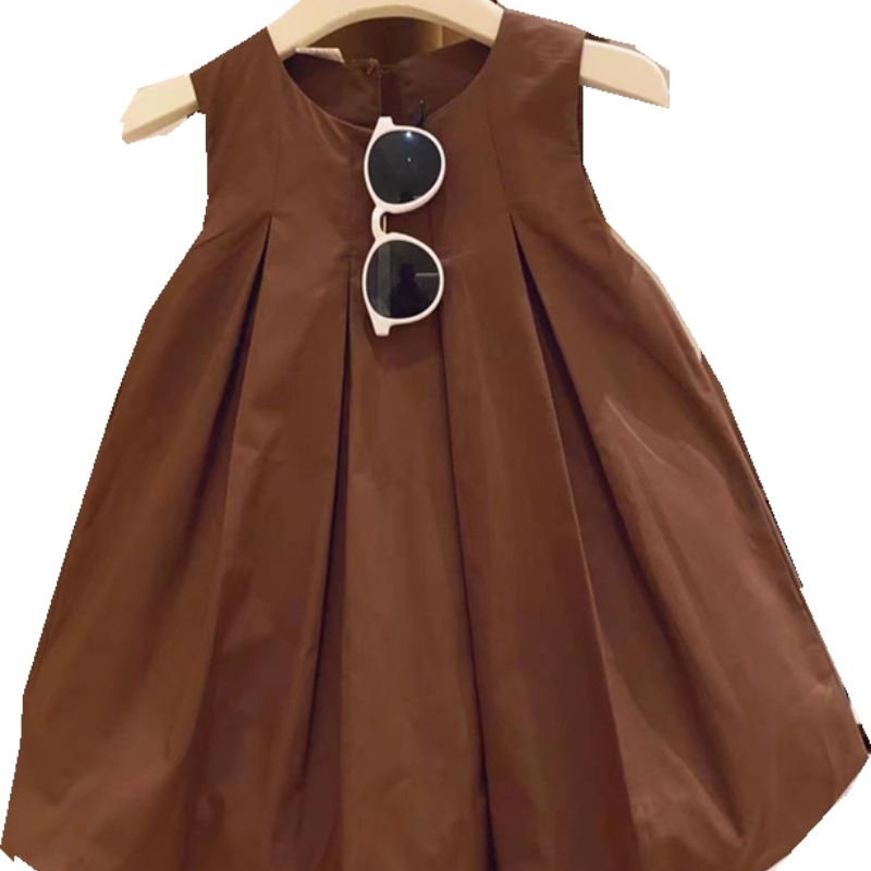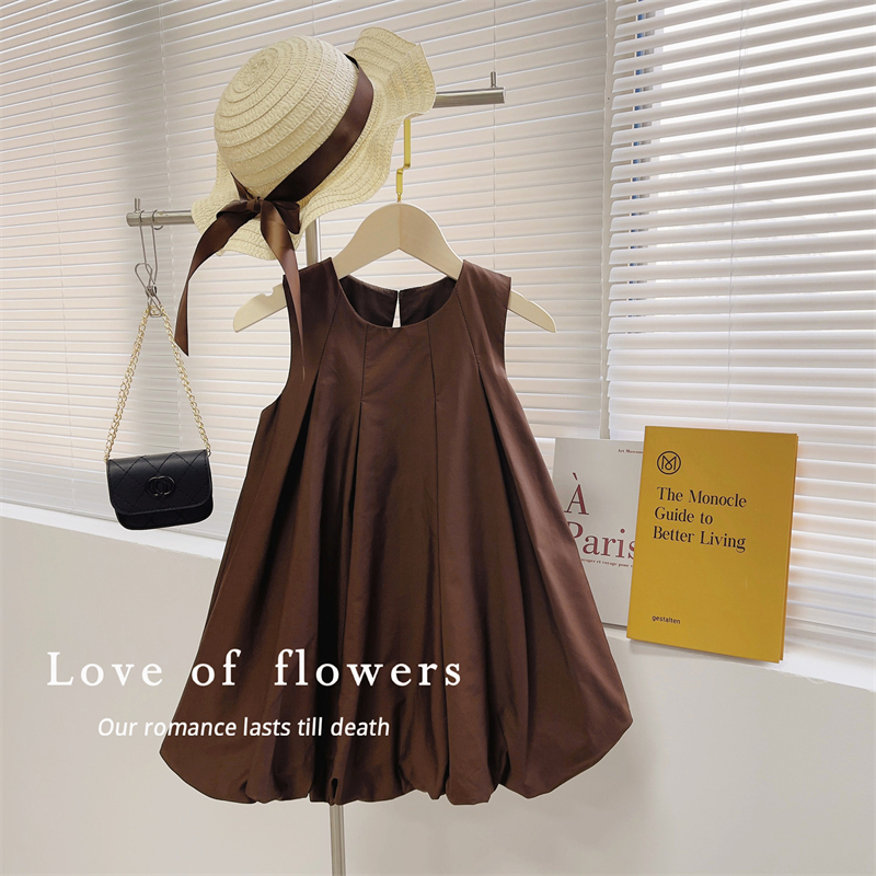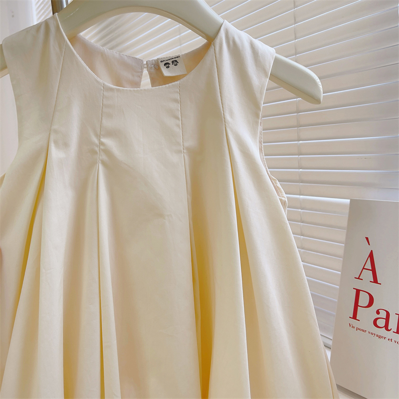 法式简约洋气公主裙女童纯色百褶花苞气质背心连衣裙2025夏装新款