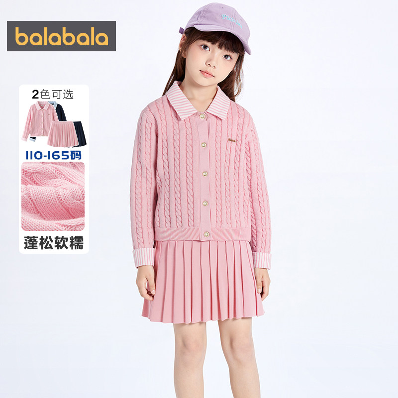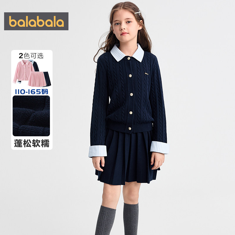 巴拉巴拉女童小香风套装中大童裙子两件套春秋款童装儿童针织衫潮