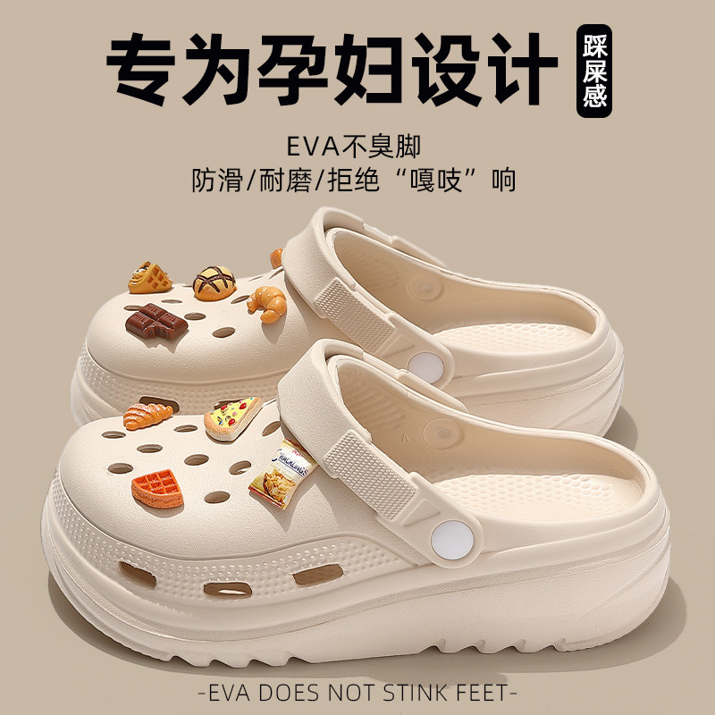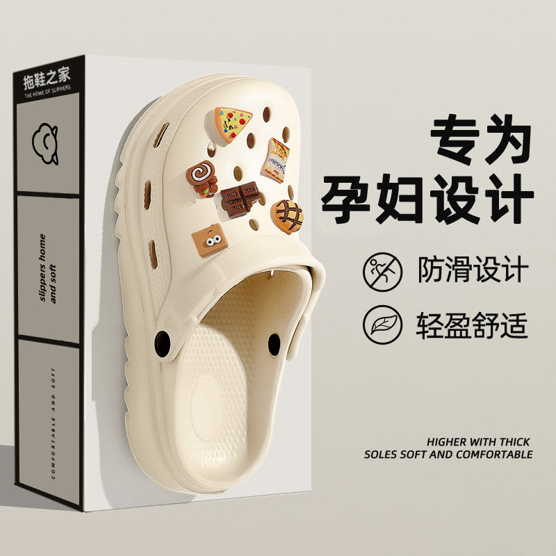 孕妇防滑洞洞鞋女款夏季2024新款外穿厚底沙滩凉鞋包头半拖鞋女士