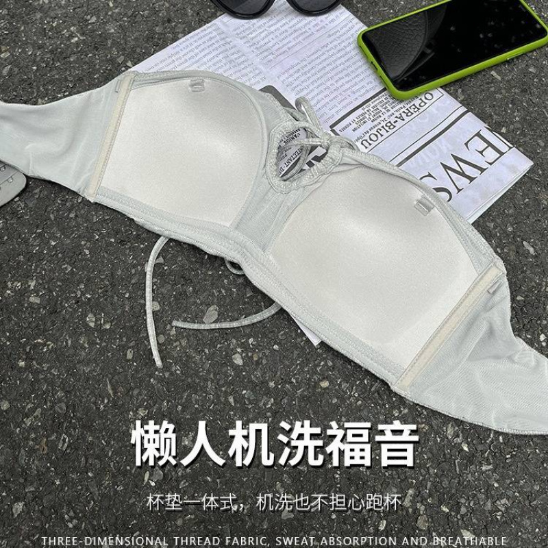 小胸聚拢内衣女挂脖式性感无肩带防滑抹胸无钢圈收副乳美背文胸罩