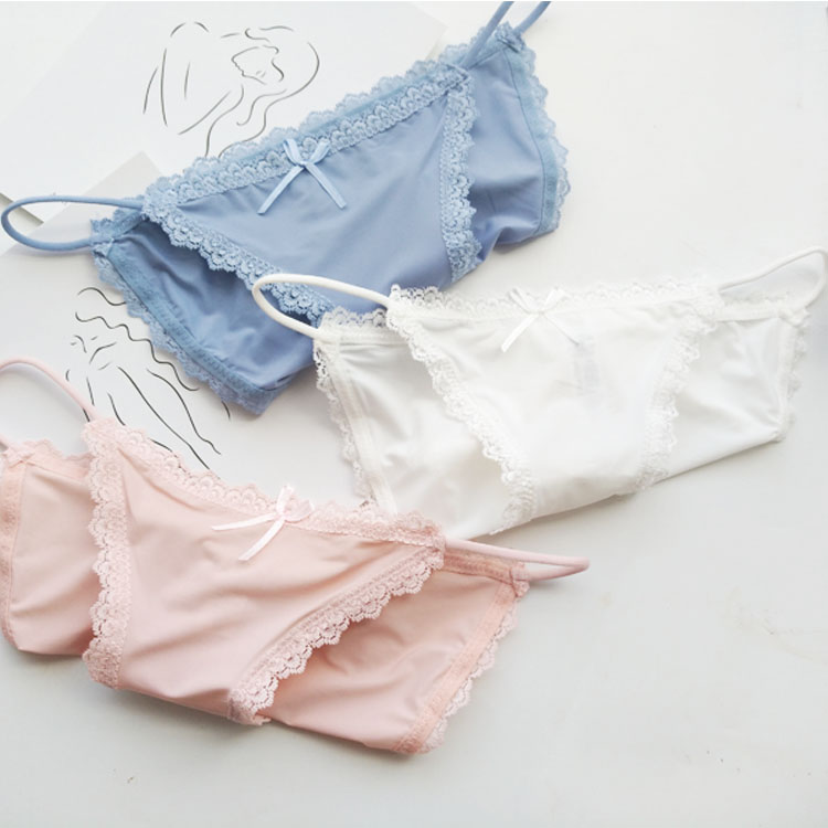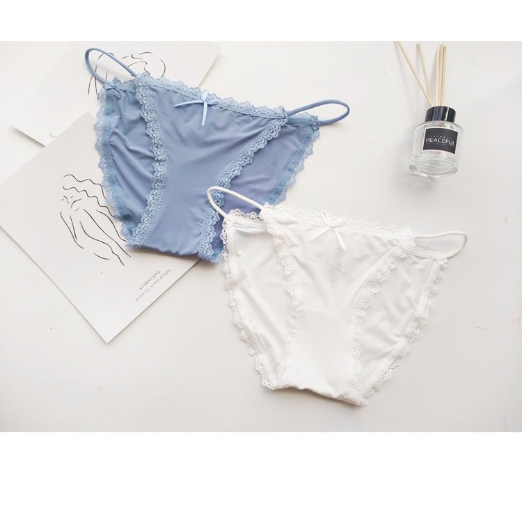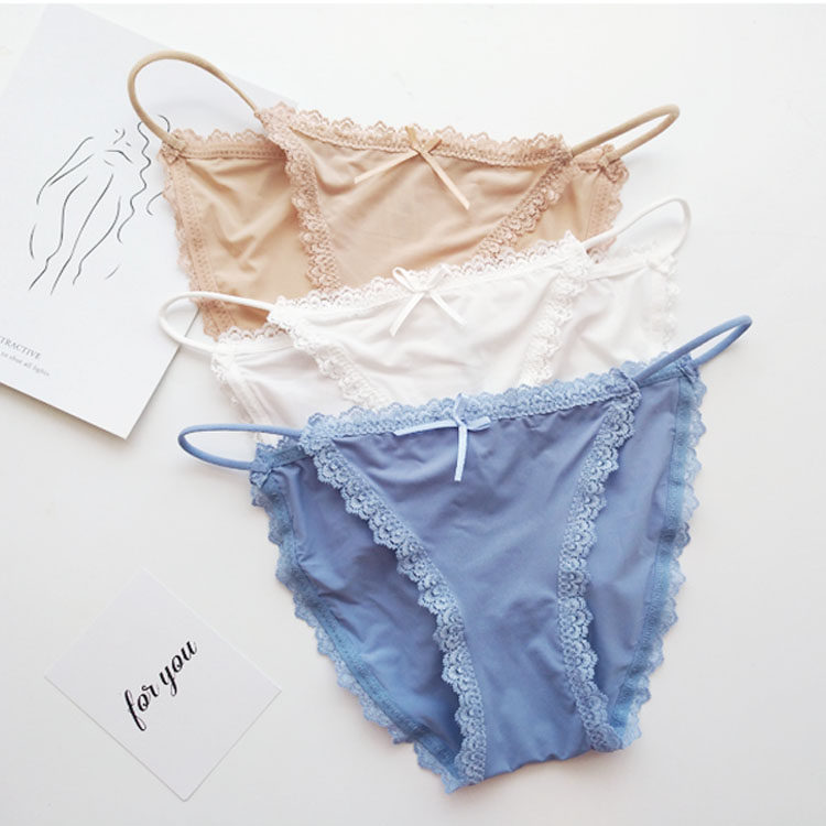 三条装性感细带冰丝无痕女士内裤蕾丝一根带纯棉裆部中低腰三角裤