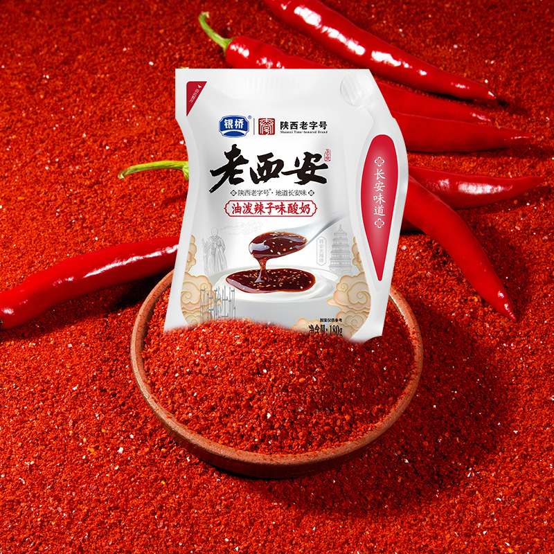 银桥老西安特产油泼辣子口味酸奶180g*8袋装生牛乳网红风味酸牛奶