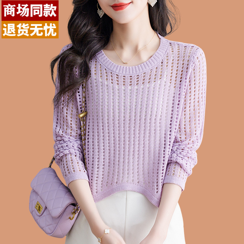 小个子打底衫女薄款针织镂空网衫玫粉色毛衣超短款配裙子别致上衣