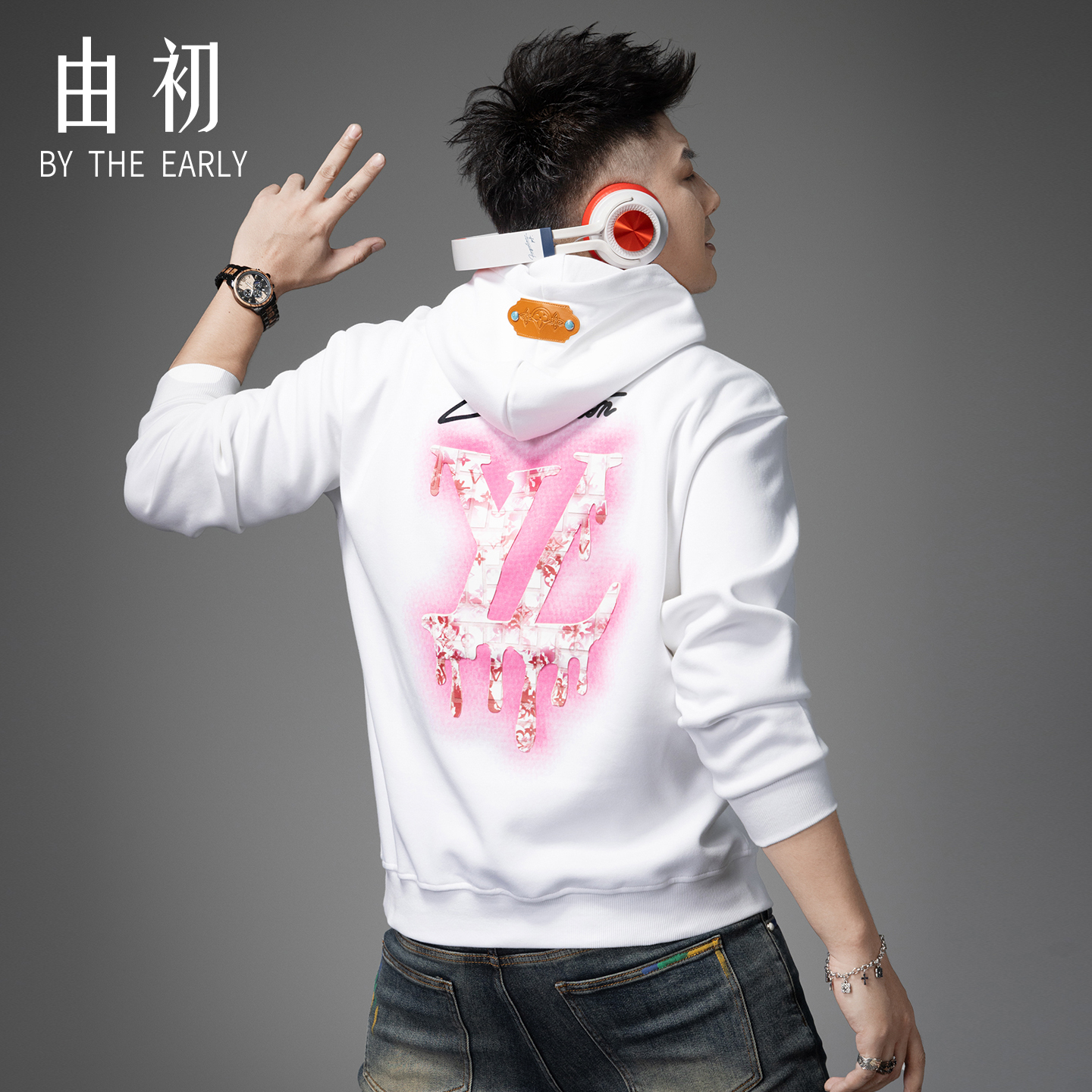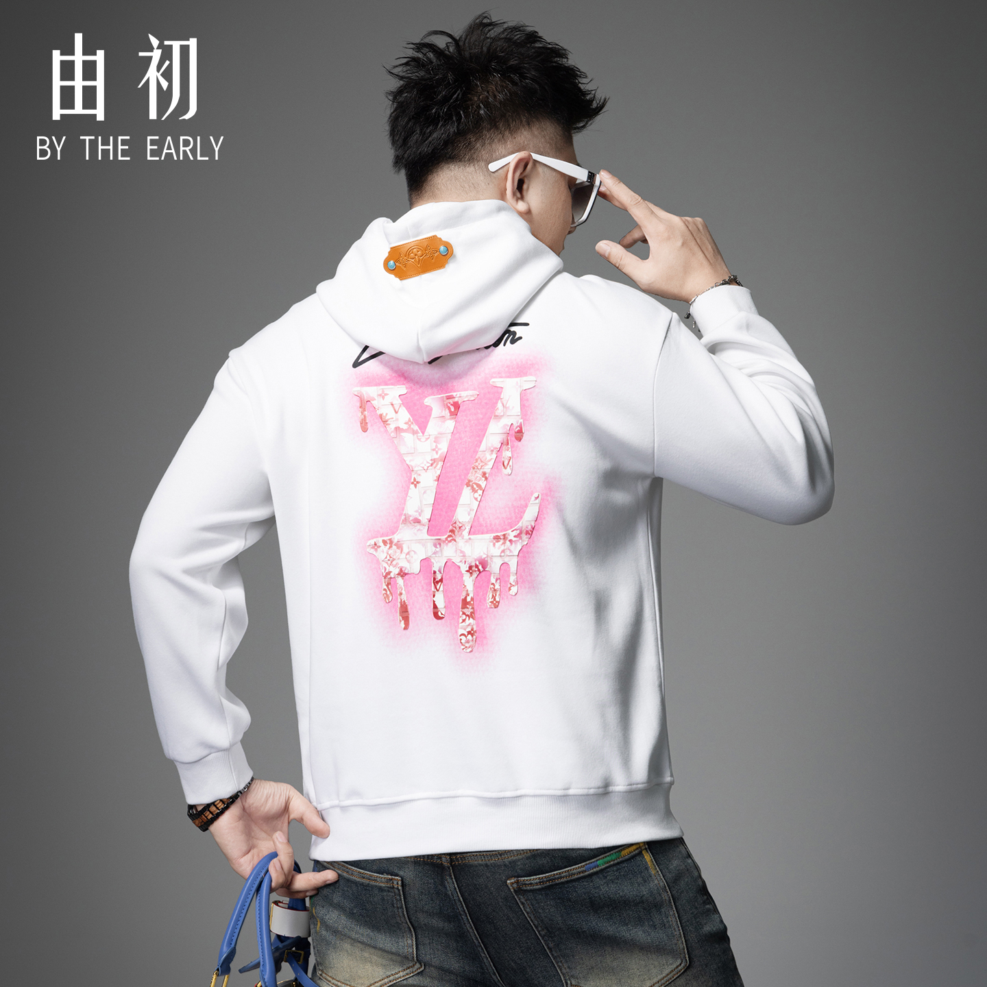 欧货男士高端印花连帽卫衣秋装上衣外套2025新款秋冬季长袖男T恤