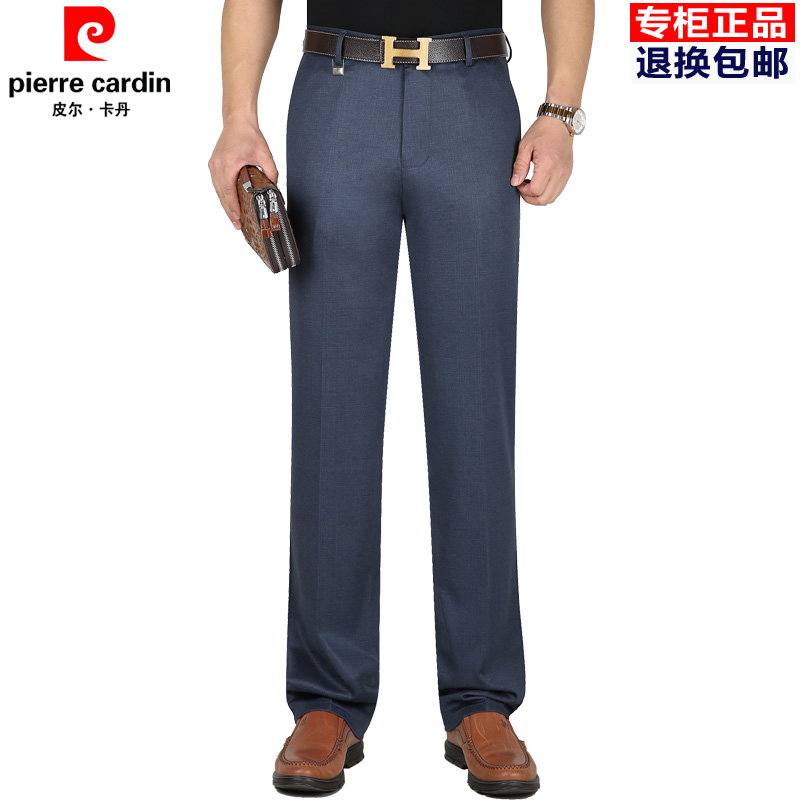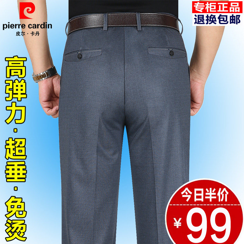 皮尔卡丹秋冬厚款弹力休闲裤直筒免烫男裤中老年高腰宽松爸爸裤子