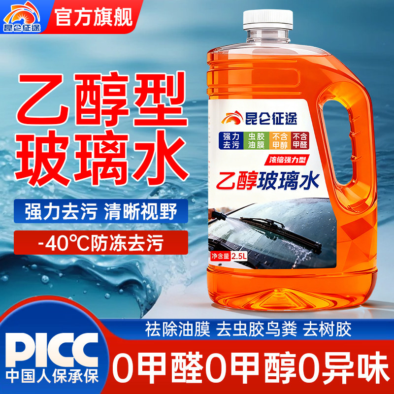 昆仑征途乙醇型玻璃水2.5L强力去污防冻-40℃清晰视野浓缩型0甲醛