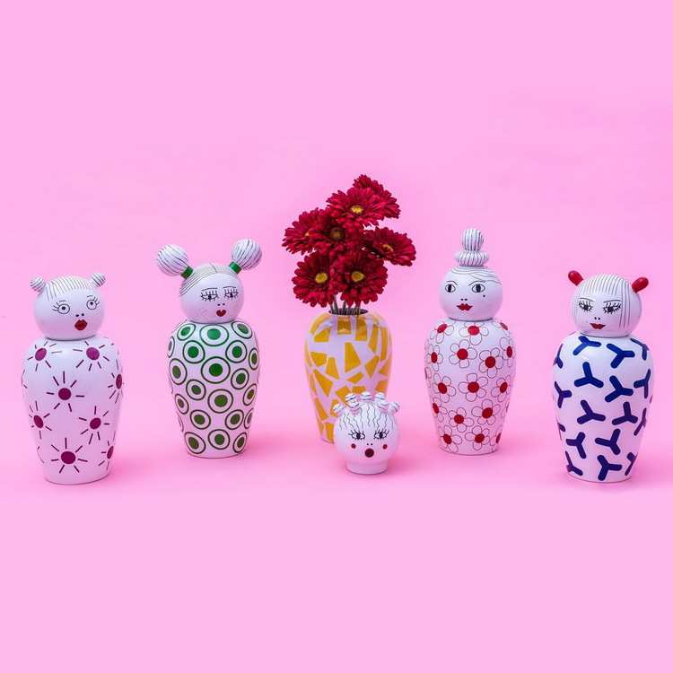 北欧设计师五大洲娃娃花瓶陶瓷简约创意客厅卧室桌面摆件