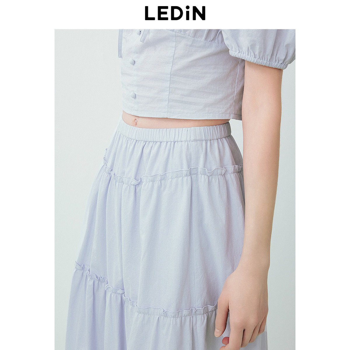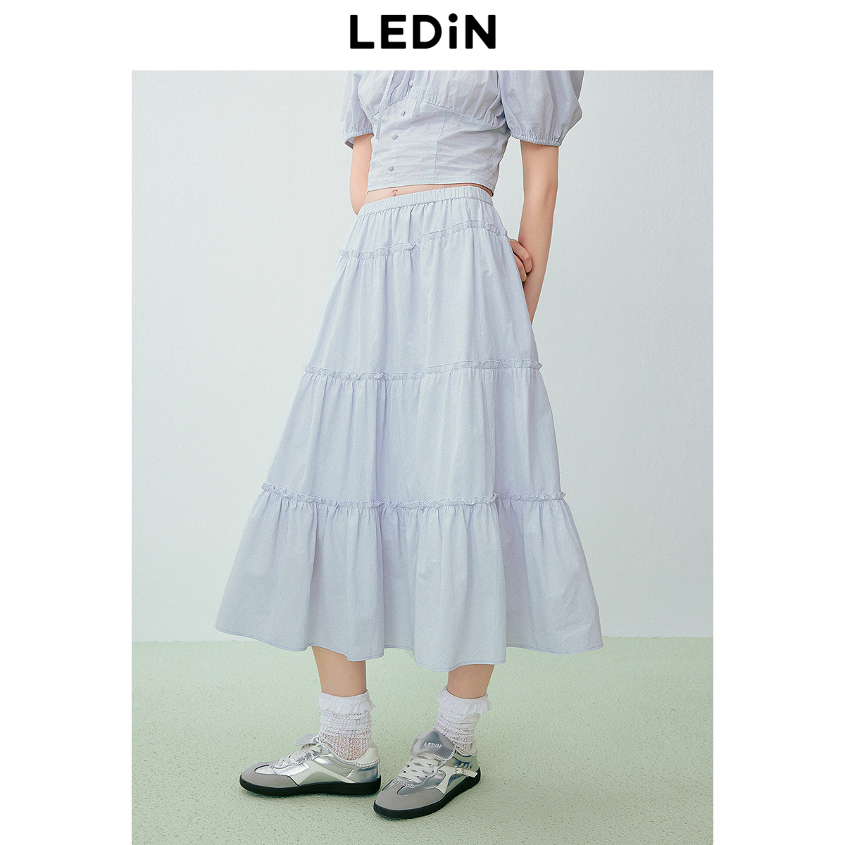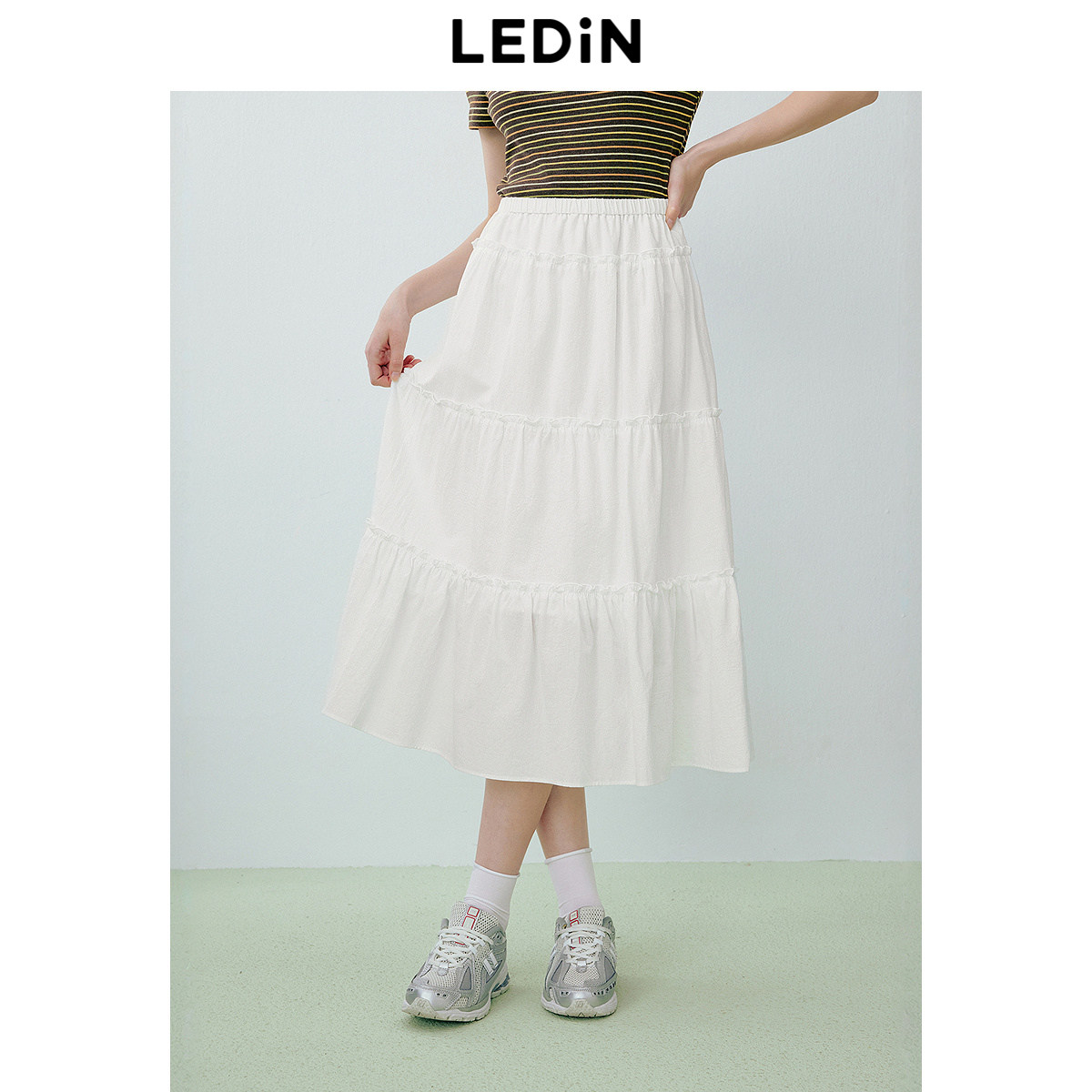 乐町韩系甜美蛋糕长裙24年夏季新款少女感纯棉半身裙基础好穿长裙