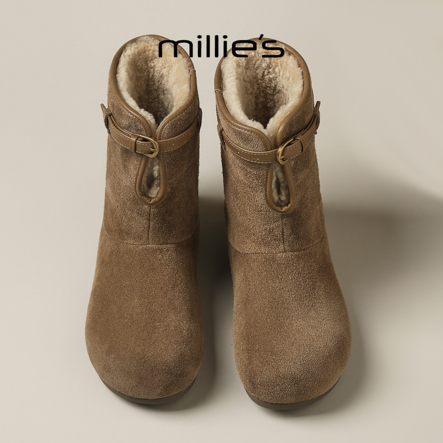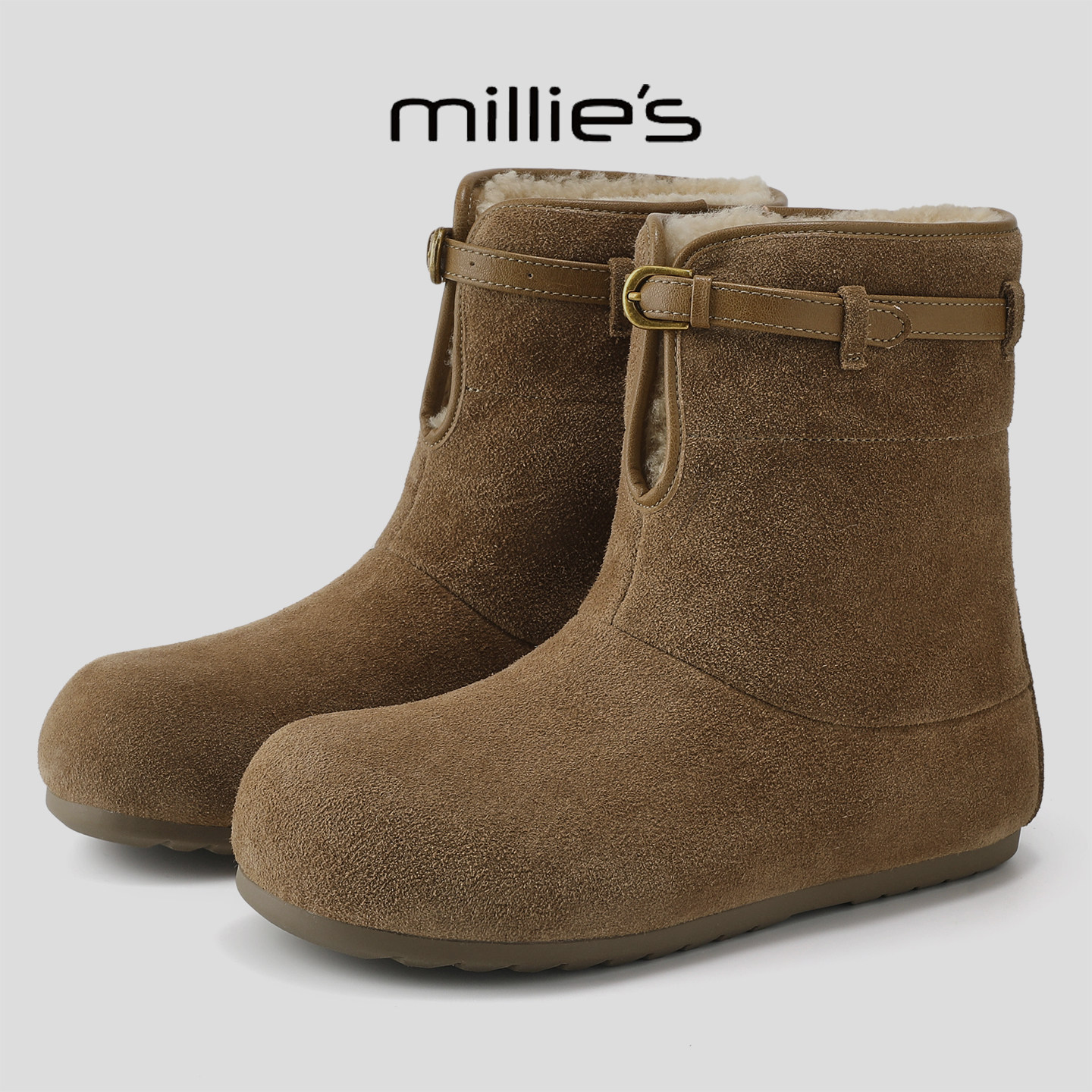 MILLIE'S/妙丽2025新款冬皮带扣短靴女加绒加厚保暖内增高雪地靴