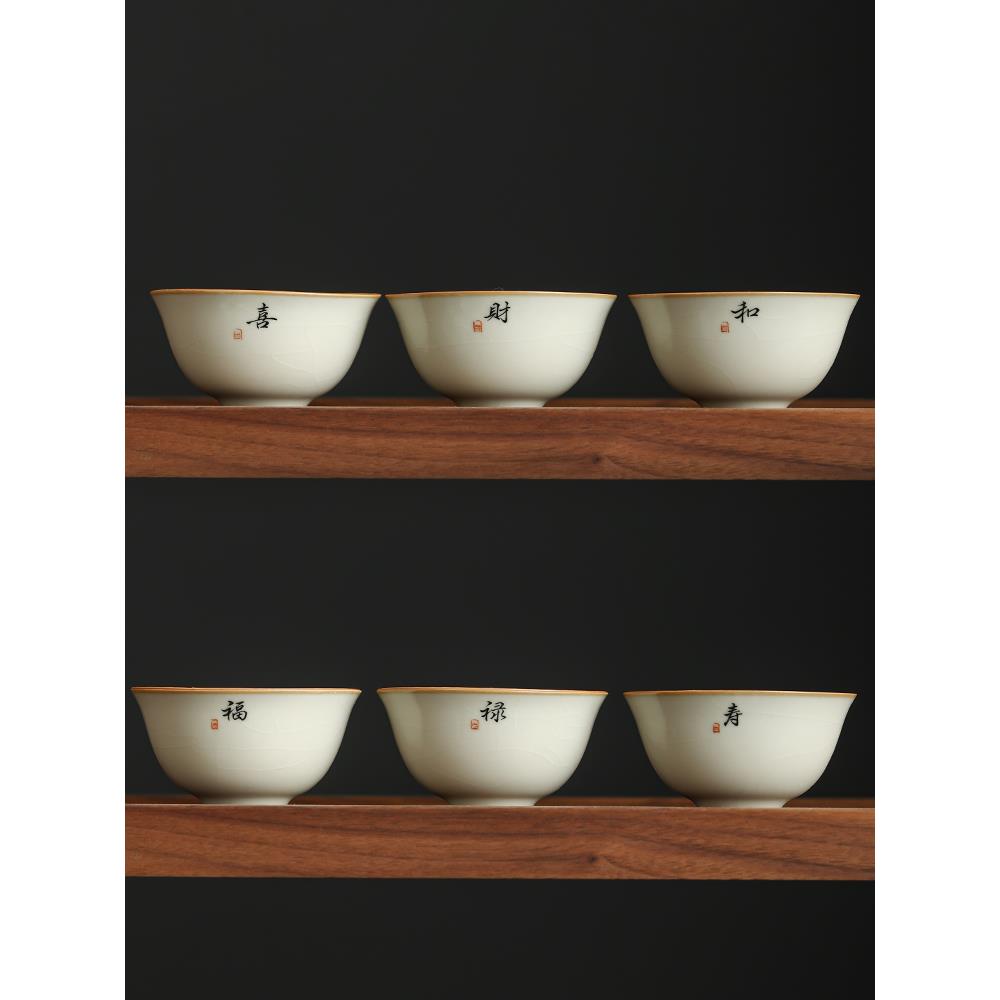 汝窑茶杯陶瓷大宫杯家用开片主人杯功夫茶具个人专用茶盏手写定制