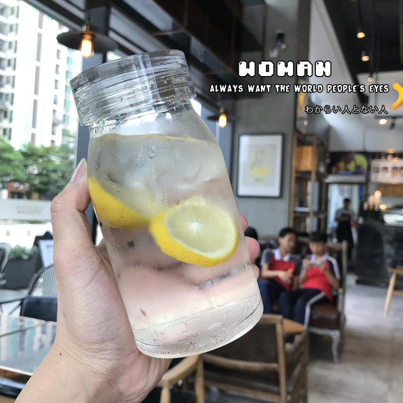简约透明单层加厚耐热玻璃水瓶男女带盖便携小清新柠檬泡茶水杯子