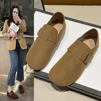 自然卷勃肯鞋女2025新款秋季休闲单鞋全包一脚蹬平底鞋小皮鞋单鞋