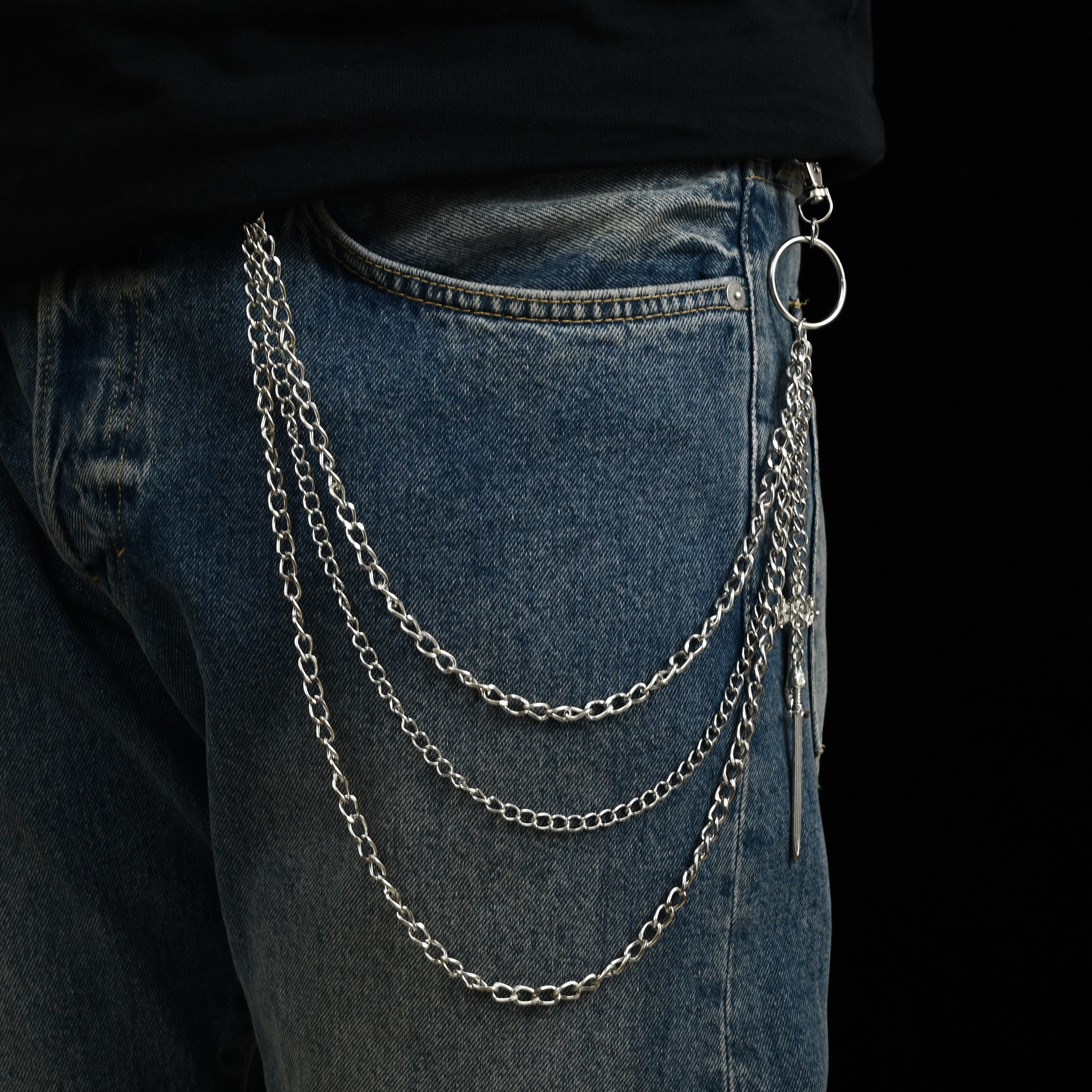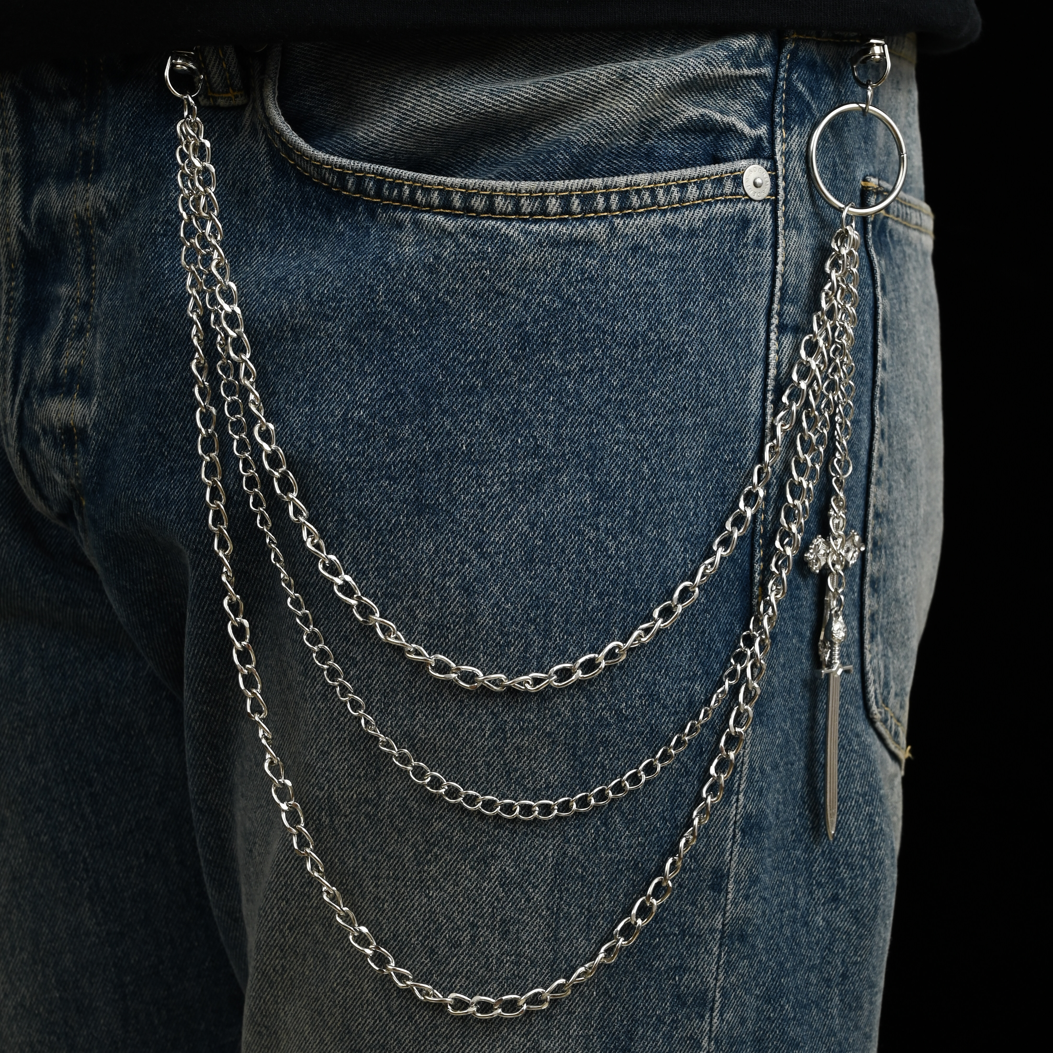 嘻哈潮流不锈钢牛仔裤裤链男女挂链个性高级感配饰金属多层腰链