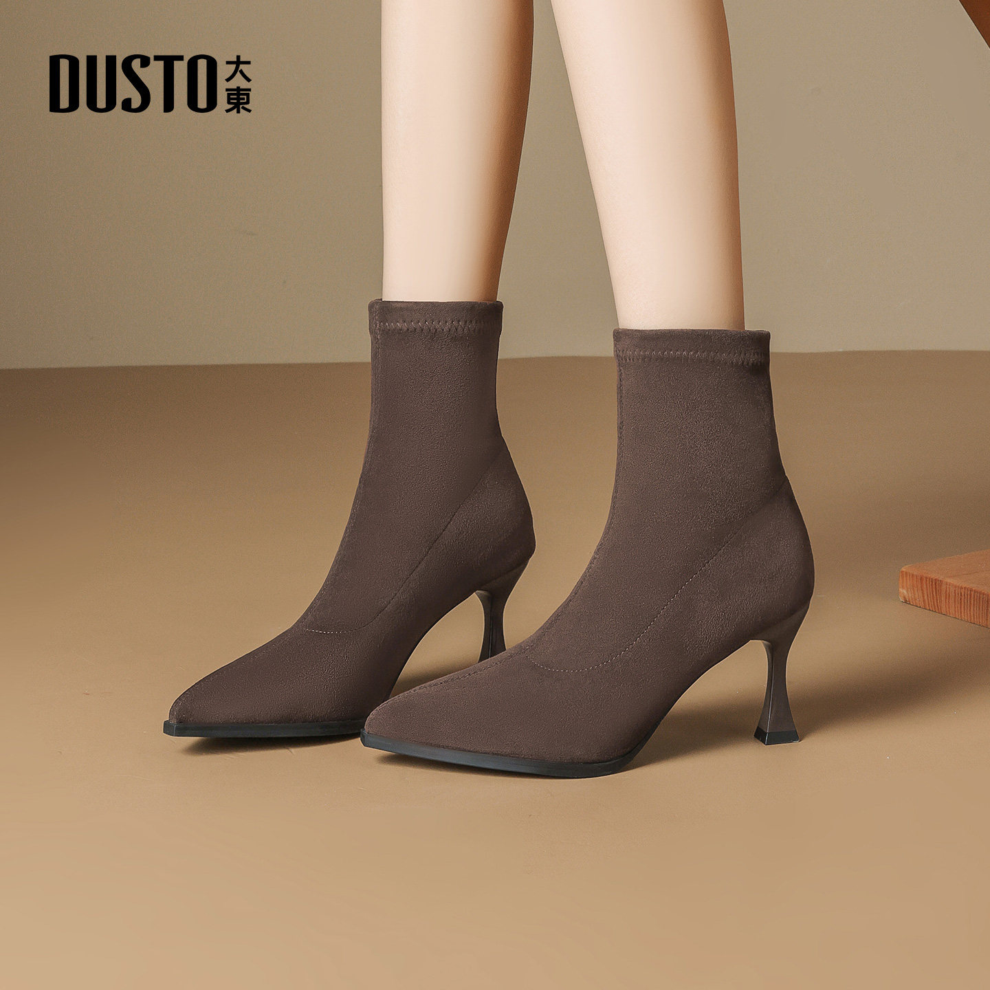 大东官方正品尖头高跟短靴袜靴