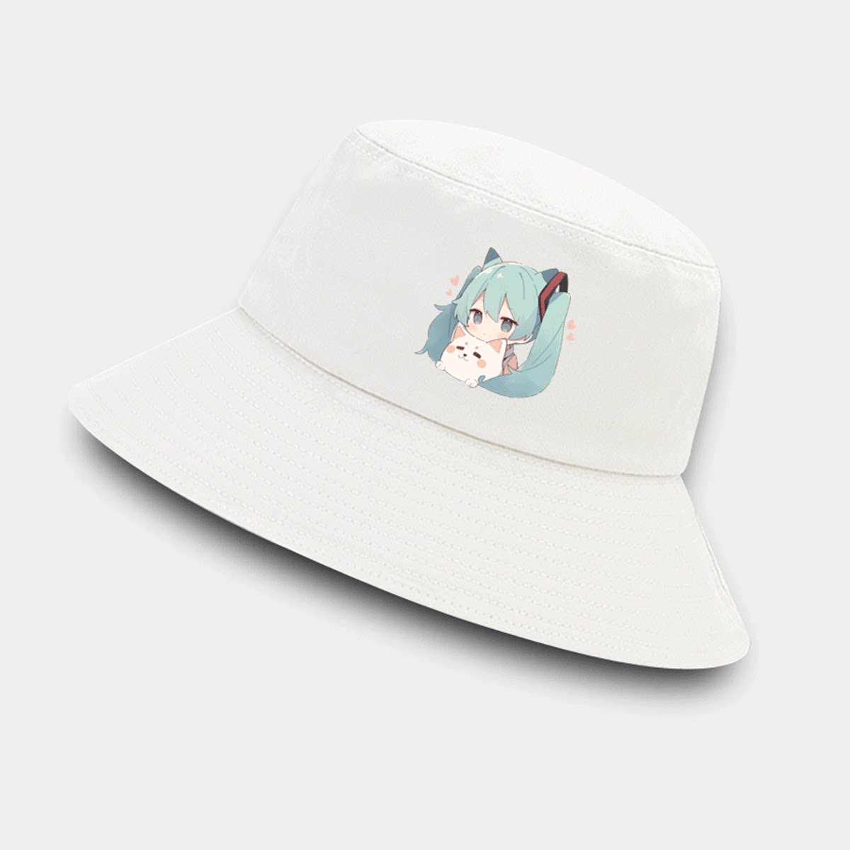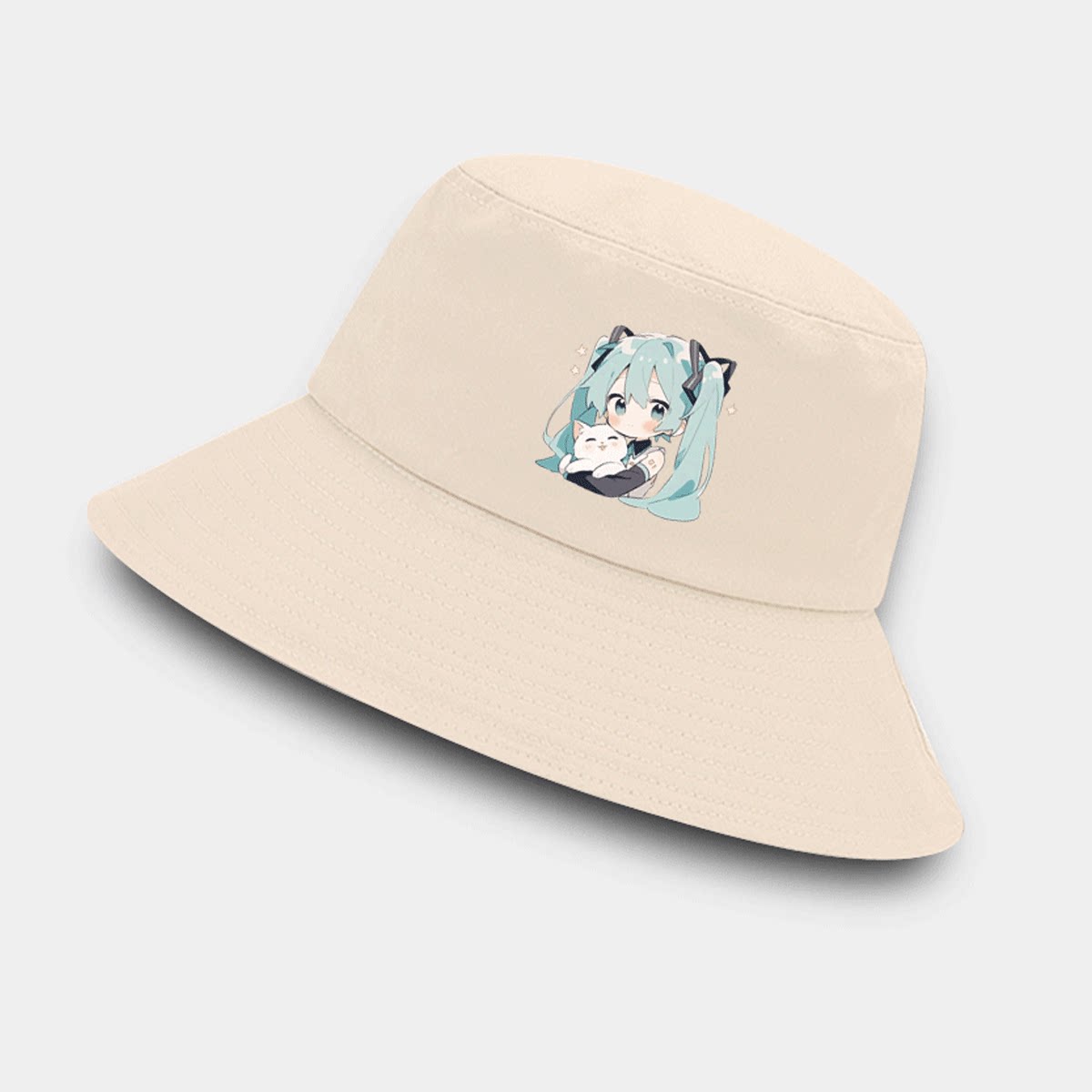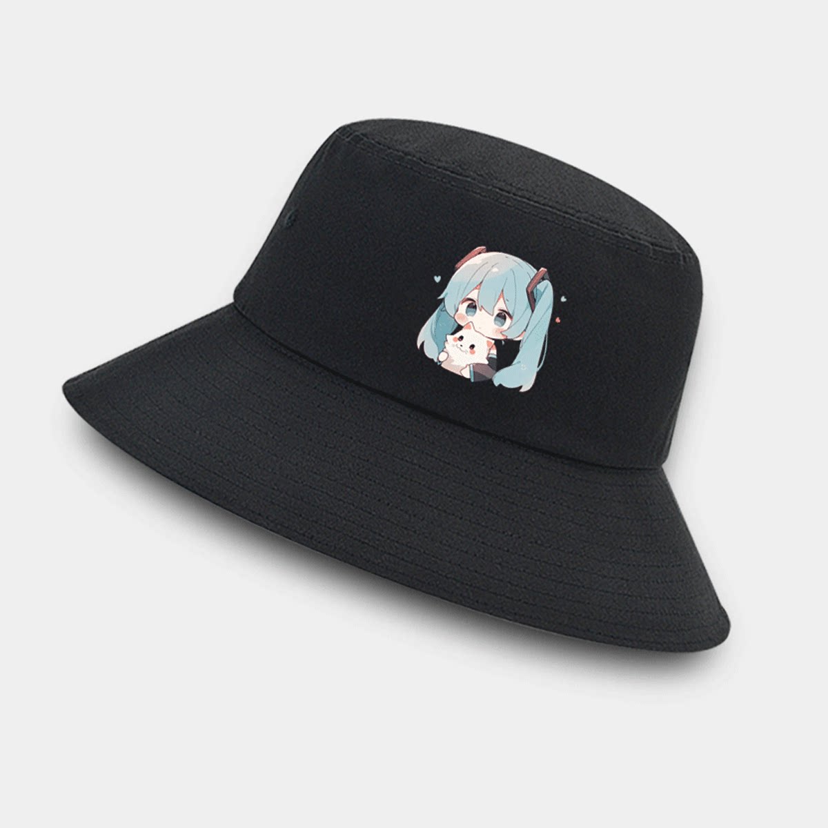 初音miku动漫周边卡通印花二次元日系可定制男女盆帽遮阳帽渔夫帽