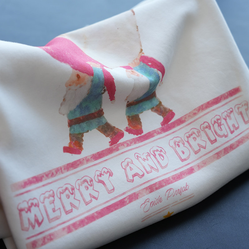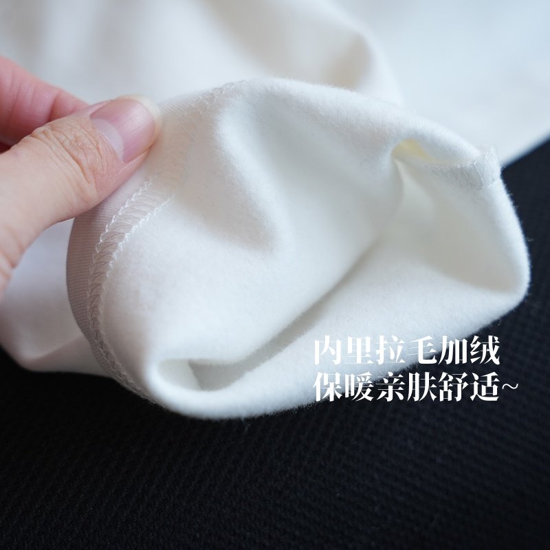 虫小小 圣诞苹果印花圆领拉毛加绒长袖T恤女休闲内搭打底秋冬A92E