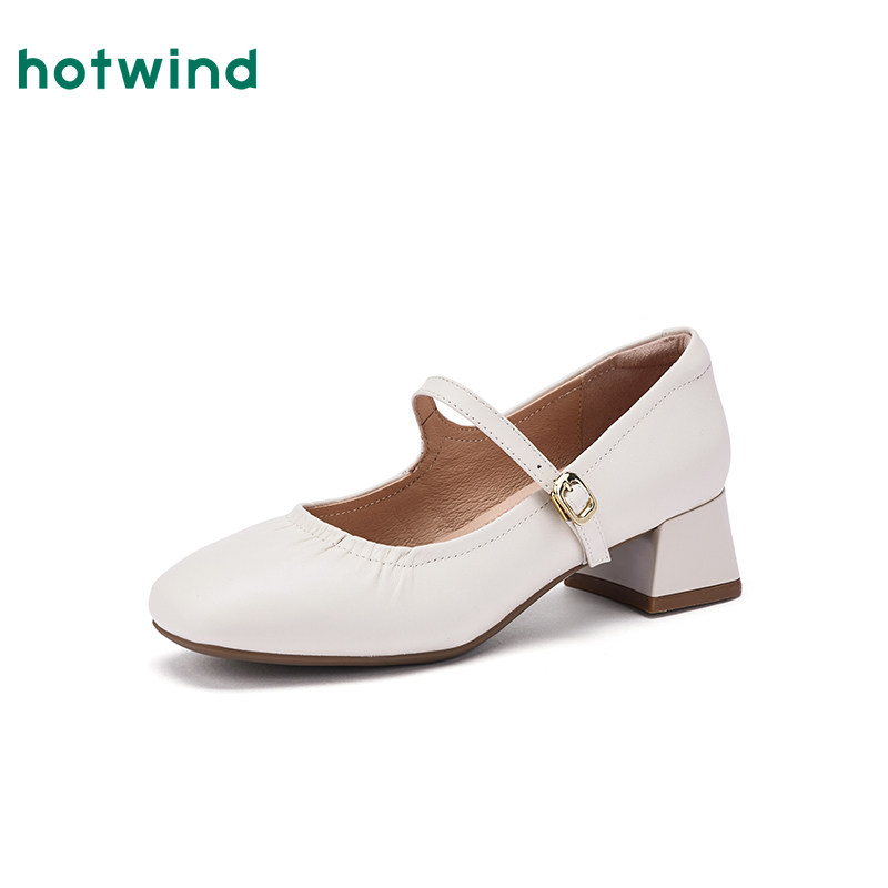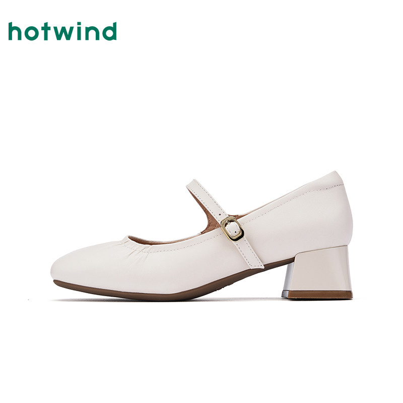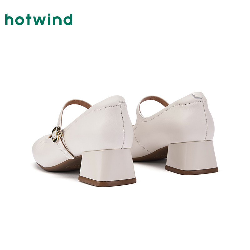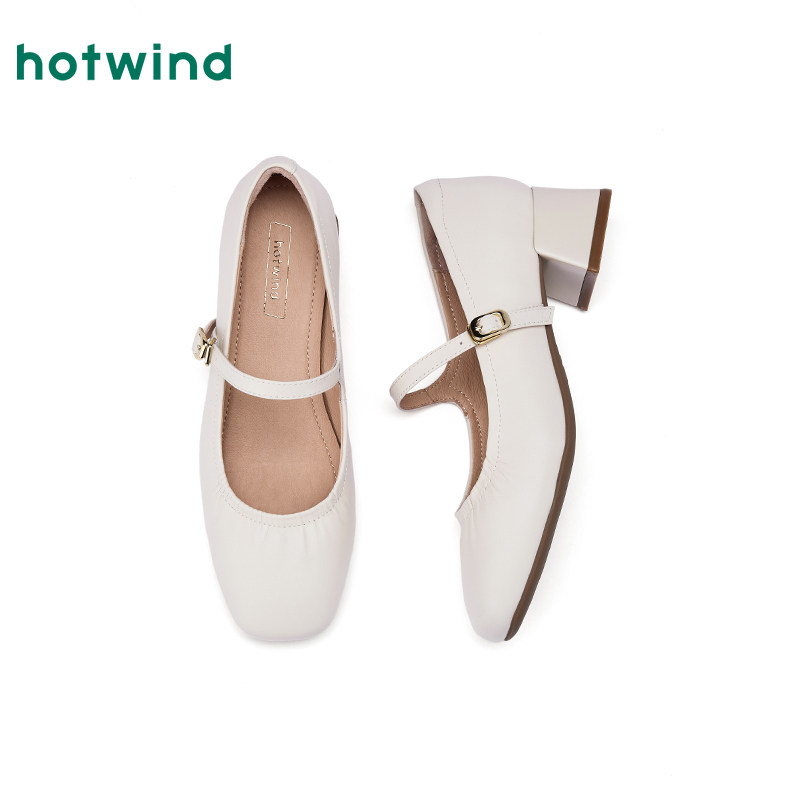 热风粗跟玛丽珍鞋2026年春季新款百搭银色浅口单鞋通勤高跟女鞋子