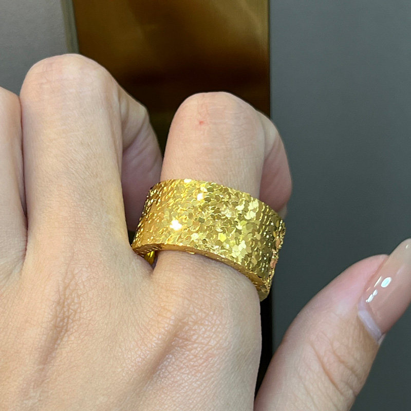 碎冰冰黄金戒指宽面实心999足金